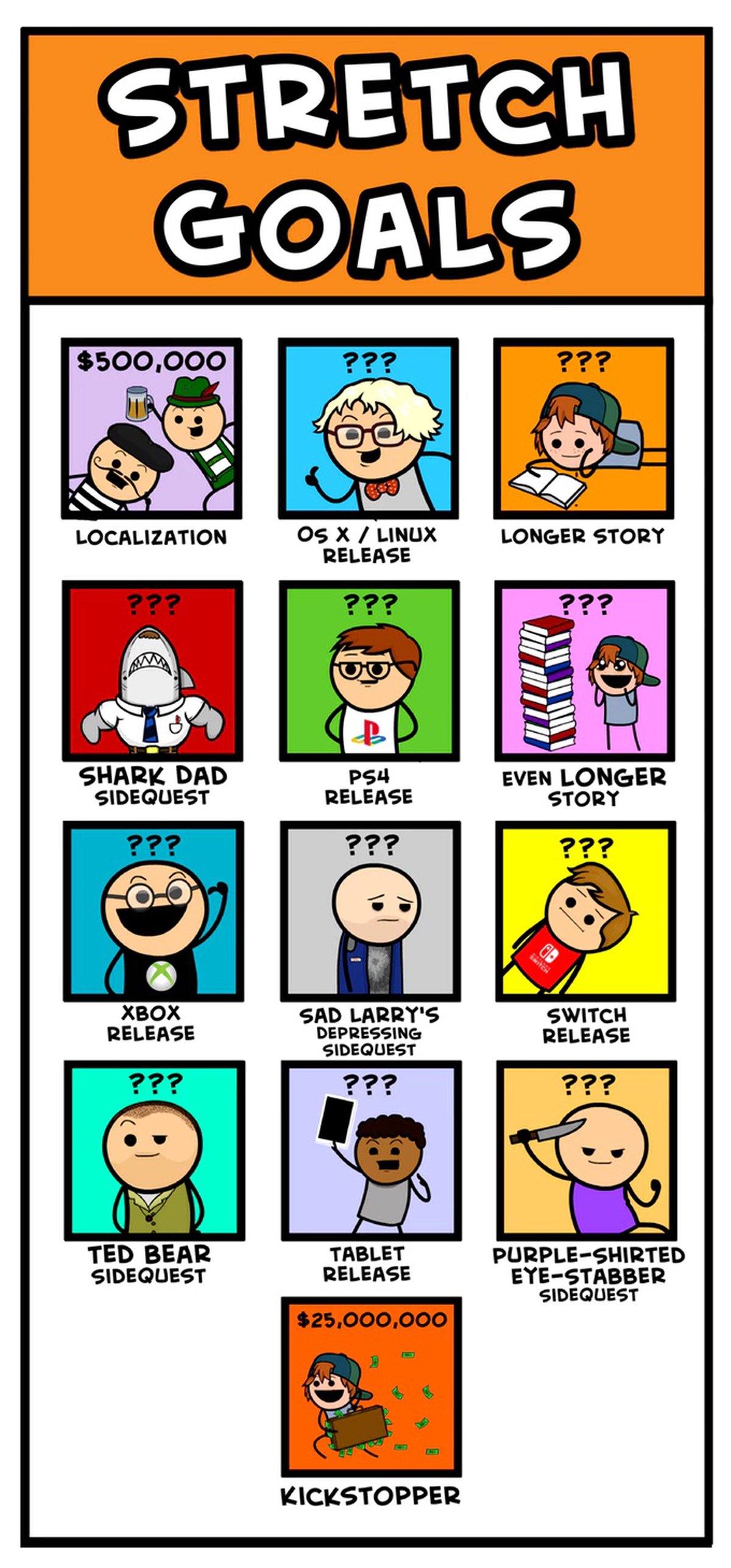 Explosm Entertainment планирует собрать на разработку игры как минимум $300 тысяч. План явно будет выполнен: за первый час авторам удалось привлечь $52 тысячи. Кампания закончится 5 октября, в миллионных сборах можно почти не сомневаться.