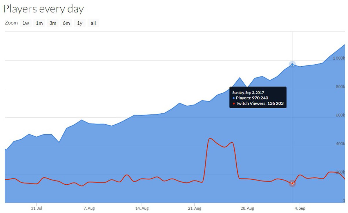 Playerunknowns Battlegrounds продолжает прибавлять. В минувшую пятницу по заброшенному острову одновременно бегало больше миллиона игроков, к вечеру воскресенья этот показатель умудрился вырасти еще сильнее.