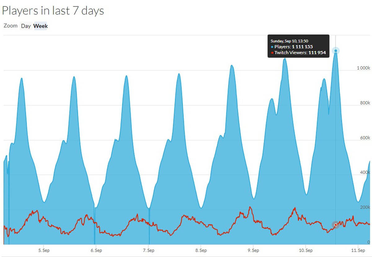 Неделю назад все было еще интереснее. В прошлое воскресенье Playerunknowns Battlegrounds в пике привлекал 970240 игроков - то есть всего за неделю пиковый онлайн PUBG вырос на 140 тысяч человек, или около 14%.