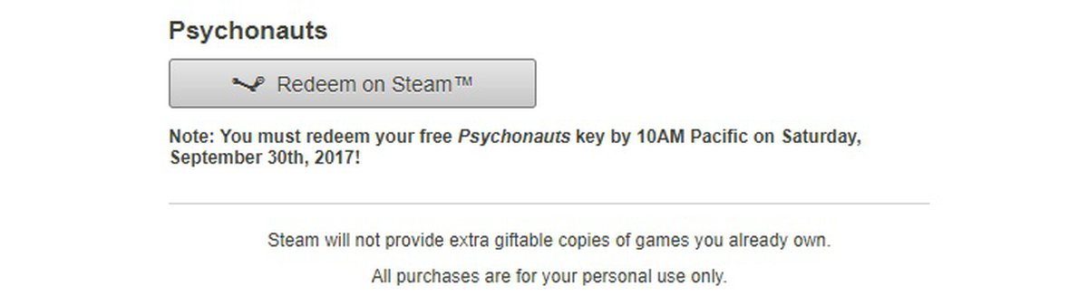 Алгоритм получения бесплатной Steam-версии Psychonauts точно такой же, как и у остальных раздач Humble Bundle. Если вы еще не зарегистрированы в магазине - отправляйтесь сюда и не забудьте привязать к своему аккаунту профиль в Steam. Это безопасно.
