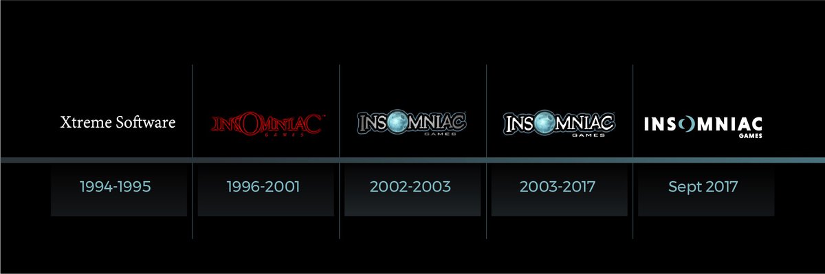 За эти годы Insomniac Games успели выпустить 25 игр для трех поколений игровых систем и запустить 13 франшиз, число сотрудников студии увеличилось с 50 до 275 с лишним. В 2019 году студии исполняется 25 лет, к этой дате команда Insomniac приняла решение привести визуальную идентичность студии в соответствие со своим новым видением.