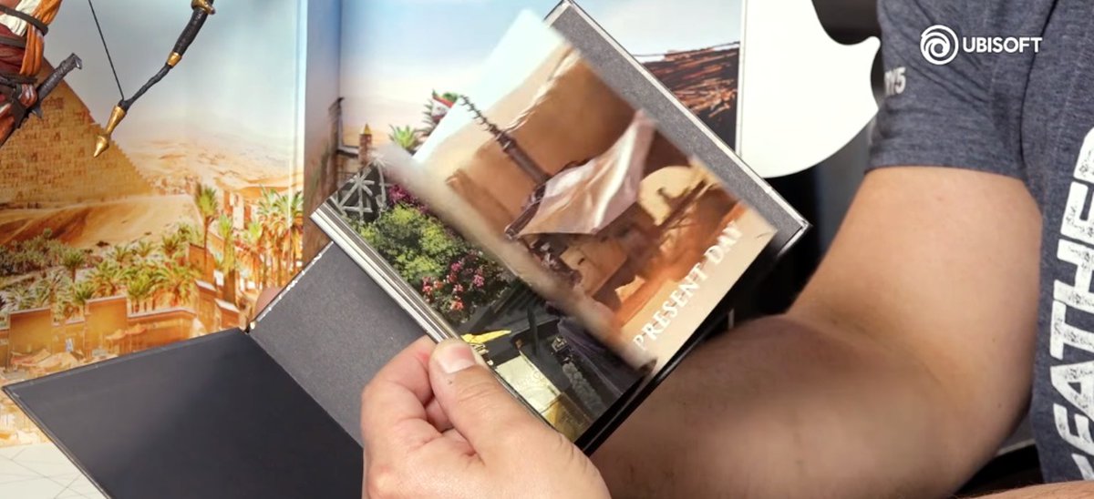 Коллекционное издание Assassin’s Creed Origins интересно не только из-за симпатичной фигурки Байека и внушительной цены. В комплект издания Dawn of the Creed входит артбук, уже во второй раз намекающий на появление в игре сюжета в современном мире.