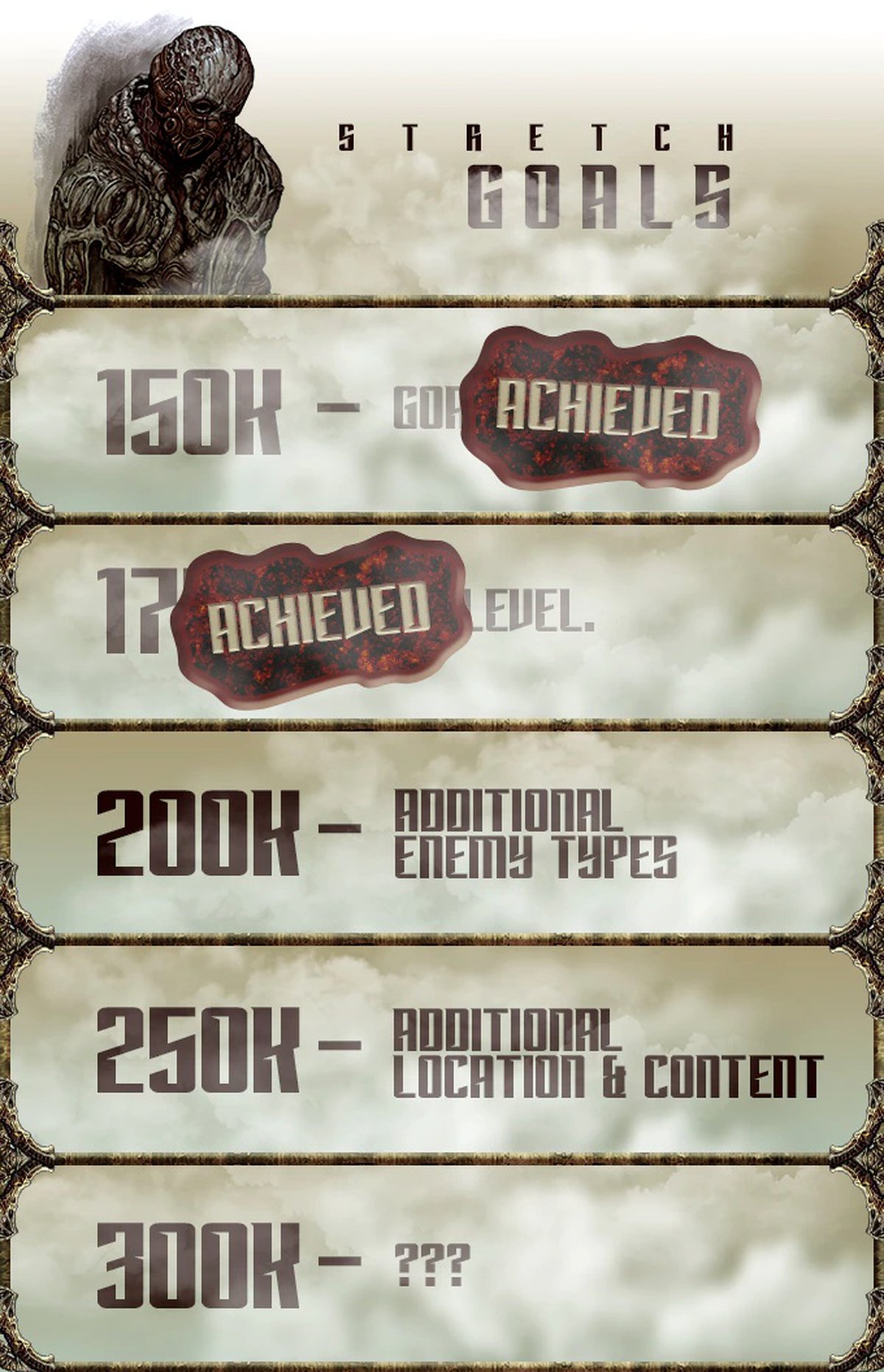Кампания окончилась успешно, но в Ebb Software скорее всего ожидали увидеть более впечатляющие результаты. Для Scorn разработчики подготовили три дополнительных цели: уровень в виртуальной реальности, новые типы противников и дополнительную локацию. Собранных средств хватило только на первую цель.