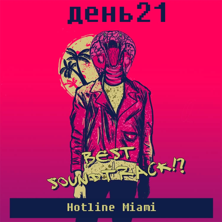 Война с цветом продолжалась, а на задание с лучшими саундтреками я был обязан нарисовать Hotline Miami. А что за Hotline Miami без узнаваемых цветов и стиля. Самое интересное вышло то, что в определённый момент кажется, что получается и что в следующий раз выйдет лучше, но на 21 день я понял, что нихуя не понял. Вот они мои прекрасные референсы, которые я использовал для лайна, вот замечательный задник, который сделал для меня фотошоп, но руки всё так же ... там же. На финальный вариант у меня ушло около трёх часов, четыре раза я удалял линии и цвета и начинал заново. Я возненавидел Майями, змей, пиджаки, розовый и себя.