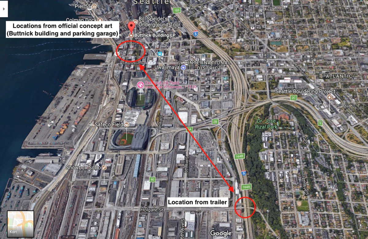 Есть еще кое-что. Место, на котором установлены указатели в реальном Сиэтле, находится всего в нескольких километрах от парковки Public Parking ABM, засветившейся на концепт-арте The Last of Us Part 2.