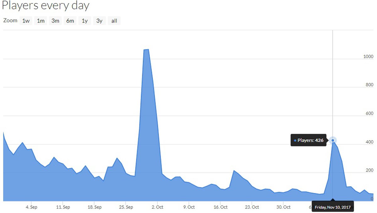 Одновременно с бесплатными выходными LawBreakers можно было приобрести со скидкой. Желающих, вероятно, было немного: спустя неделю после завершения бесплатных выходных максимальный онлайн LawBreakers оказался чуть ниже, чем до начала акции. Вчера в LawBreakers одновременно находились не больше 50 игроков.