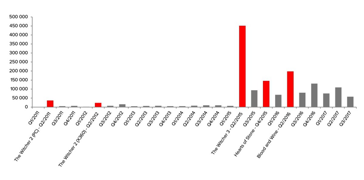 Холдинг CD Projekt, материнская компания студии CD Projekt RED, опубликовал финансовый отчет за третий квартал 2017 года. Вышедший больше двух лет назад The Witcher 3 и его дополнения продолжают приносить компании хорошие деньги.