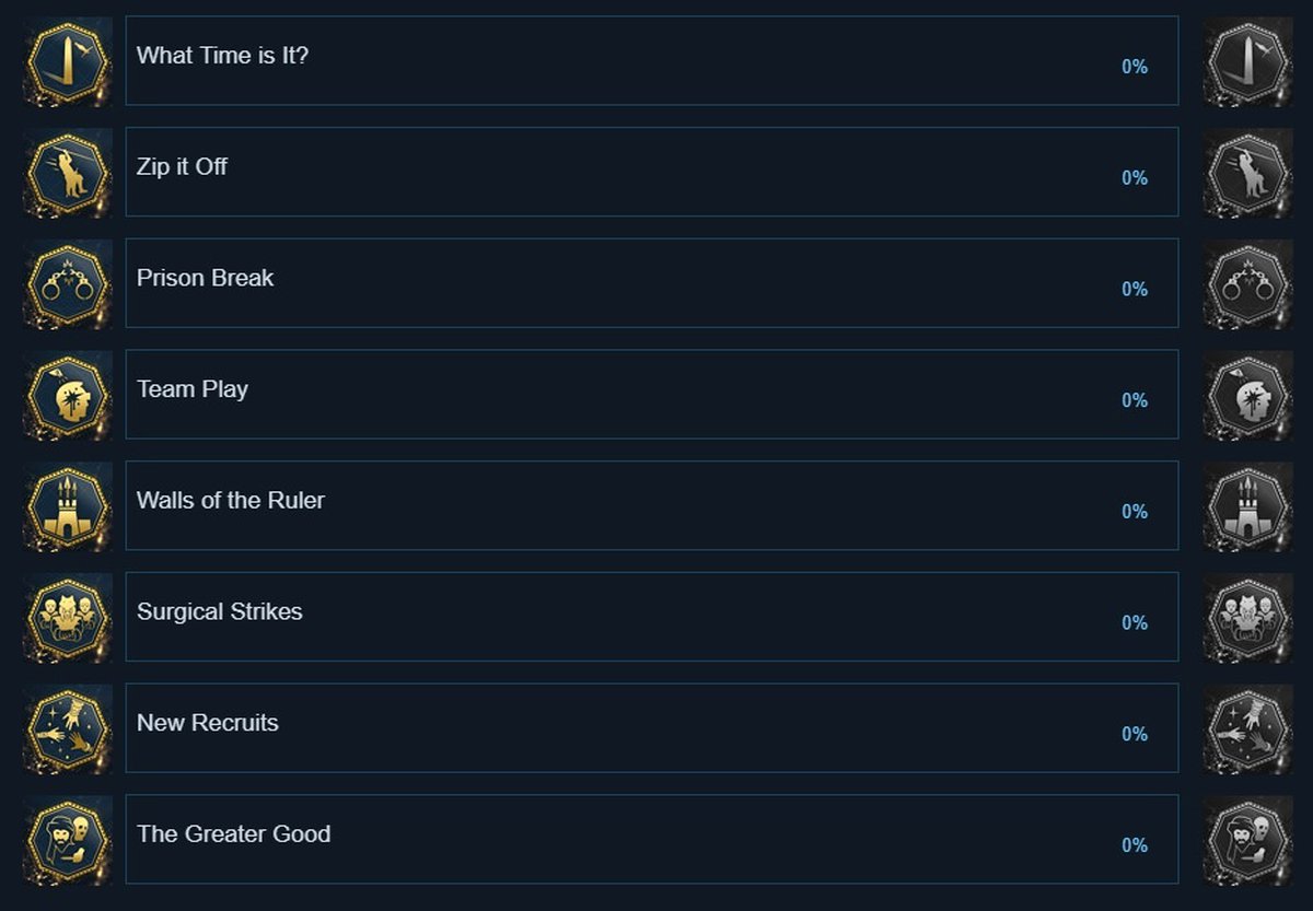 Описаний этих достижений у нас нет. Судя по названиям трофеев Байеку предстоит побег из тюрьмы, набор рекрутов в Братство и, возможно, некие неприятные действия во имя всеобщего блага - или расправа с тем, кто действует во имя этого блага.