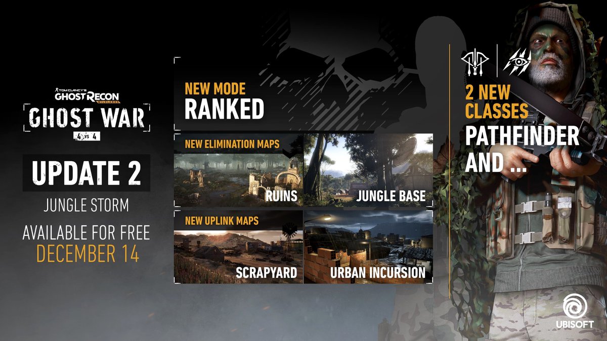 Помимо двух классов персонажей в Jungle Storm появится четыре новых карты, по две для режимов Elimination и Uplink. Также обновление введет в игру ранговый режим, новое оружие и снаряжение. Некоторые из новых стволов показаны в трейлере обновления.