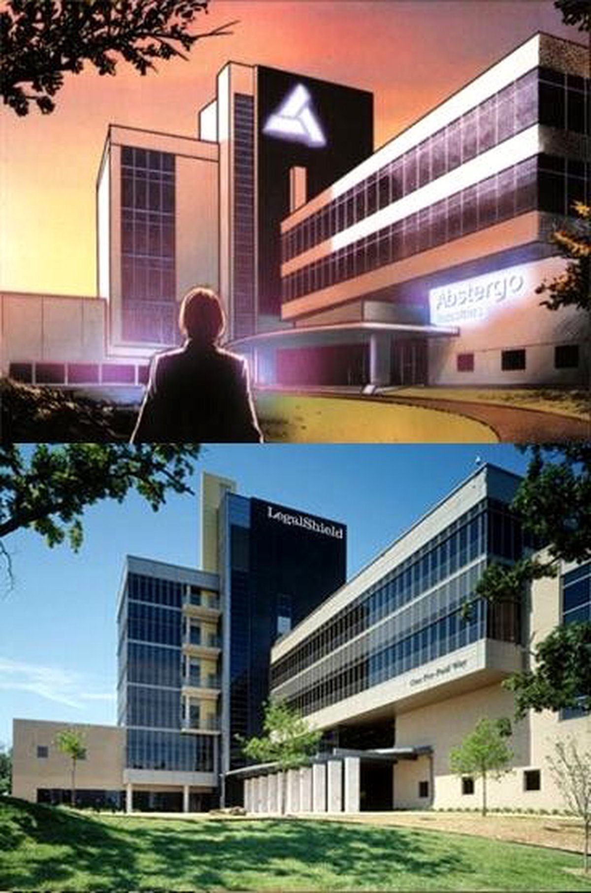 Похоже, при создании офиса Абстерго Индастриз авторы комиксов вдохновлялись офисом юридической компании LegalShield, расположенным в Оклахоме. Изображение выше - тот самый офис Абстерго, ниже - фотография офиса LegalShield.