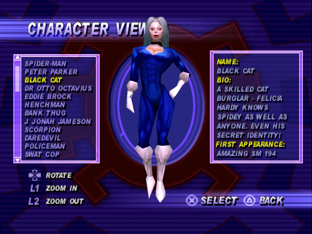 Забавный факт: что в ранних версиях, что в финальной версии игры для PlayStation и Nintendo 64 – чёрная кошка изображена как в комиксах и animated series, а именно с бархатом на руках и ногах, и с повязкой на глазах, однако данный образ не используется в игре. Спустя год, в версиях для PC и DreamCast, этот недочёт исправили, и модель Кошки соответствует той, что на загрузочных экранах.