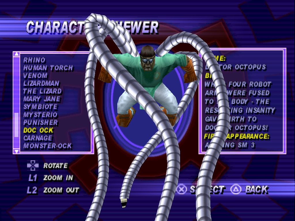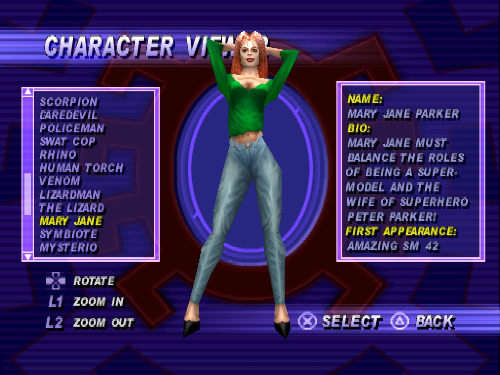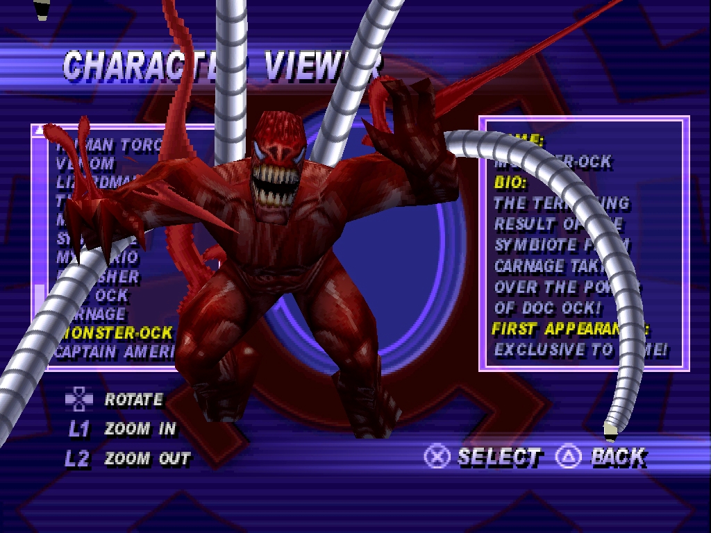Стоит отметить ещё то, что в галерее персонажей нет Submariner'a, и на определённых персонажах нельзя нажать "квадрат" или "круг".