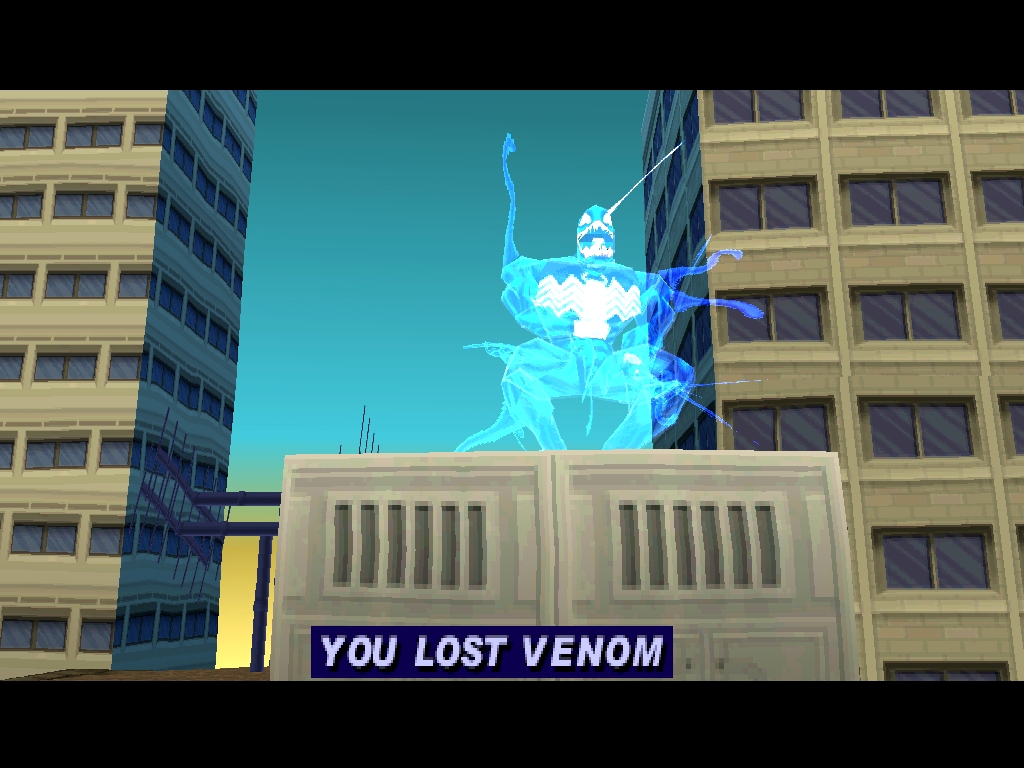 Следующее на очереди – Веном. Тут всё очень плачевно, сохранилась всего парочка роликов, да и то один из роликов имеет звуковую дорожку от ролика со Скорпионом. Не работают два уровня, а последний попросту не может закончится, даже после поражения Венома.