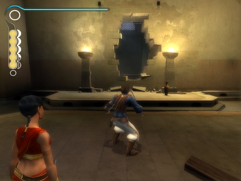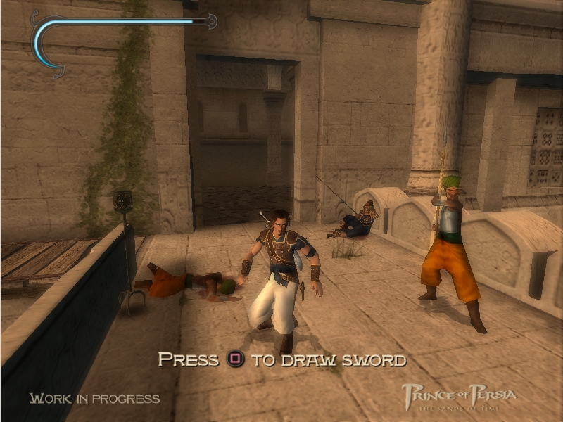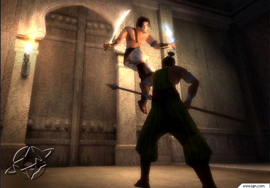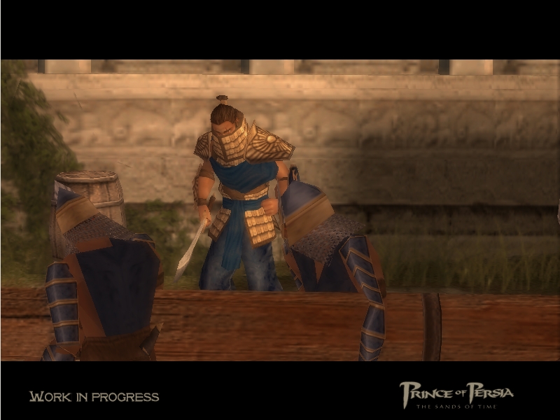 И последнее – скриншот с сайта IGN и журналов, где принц без верхней одежды, с кинжалом времени в руках – прыгает на солдата Индии. Увы, остаётся только гадать, что это за место и откуда в игре, имея кинжал времени, взялись живые люди,