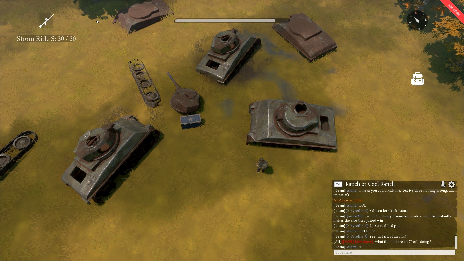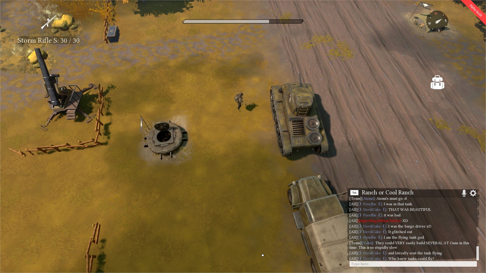 По пути на линию фронта мне попалось кладбище техники. Хотя всё-таки больше подходит "братская могила танков". Зрелище конечно интересное, но все же мне надо скорее двигаться к передовой. Пройдя ещё метров триста, наткнулся на танк. Всем своим видом он показывал свою работоспособность и манил угнать себя. Посмотрев по сторонам и не найдя признаков живых душ кроме меня, я приблизился к нему и уже хотел было угнать, но тут меня и ждал неприятный сюрприз. Техника была закрыта. Грустно.