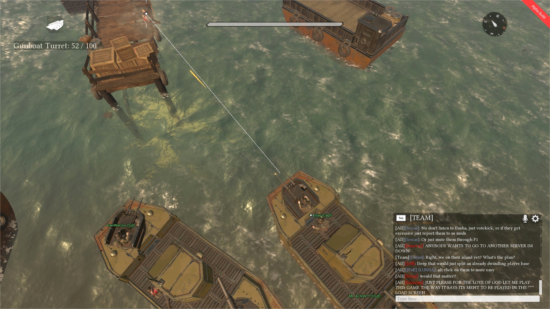 Работу мы закончили поздней ночью, и решили подождать пока не рассветёт. Как только на горизонте показался солнечный круг, капитан отдал команду к отплытию. Мы быстро подскочили на ноги и отправились в путь. Varyag крутит штурвал, Cowslanlr помогает ActioN, сидящему за артиллерийской установкой, а Я же настраивал прицел своего станкового орудия. В компании куда веселее нежели одному. Плыть нам надо было немало - к острову, на котором оставался один из последних вражеских форпостов. Но кого волнует расстояние, если вы все вместе милуетесь водной гладью и поёте пиратские шанти?