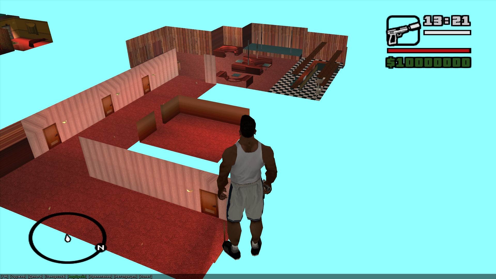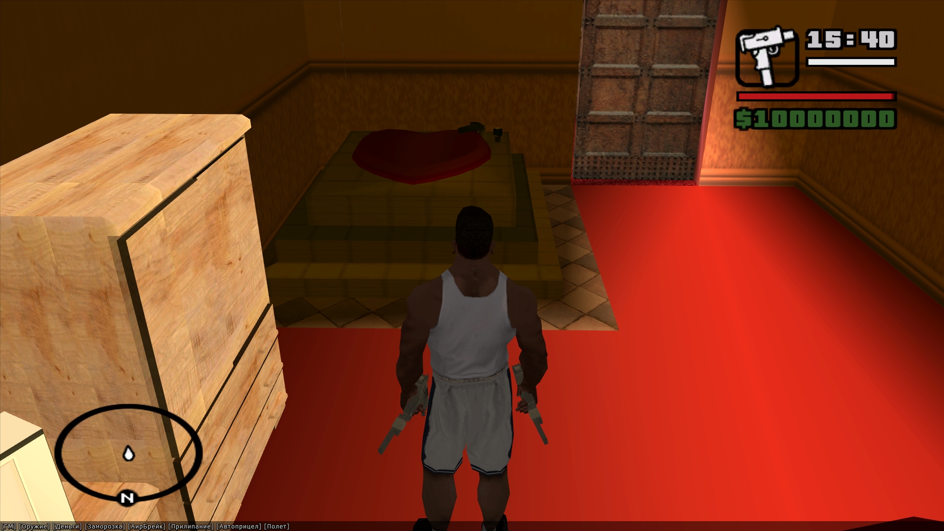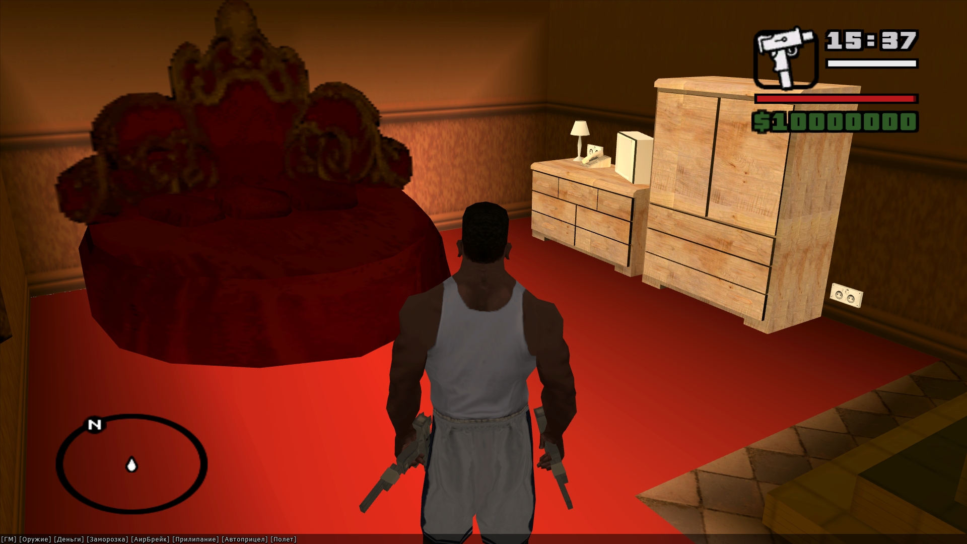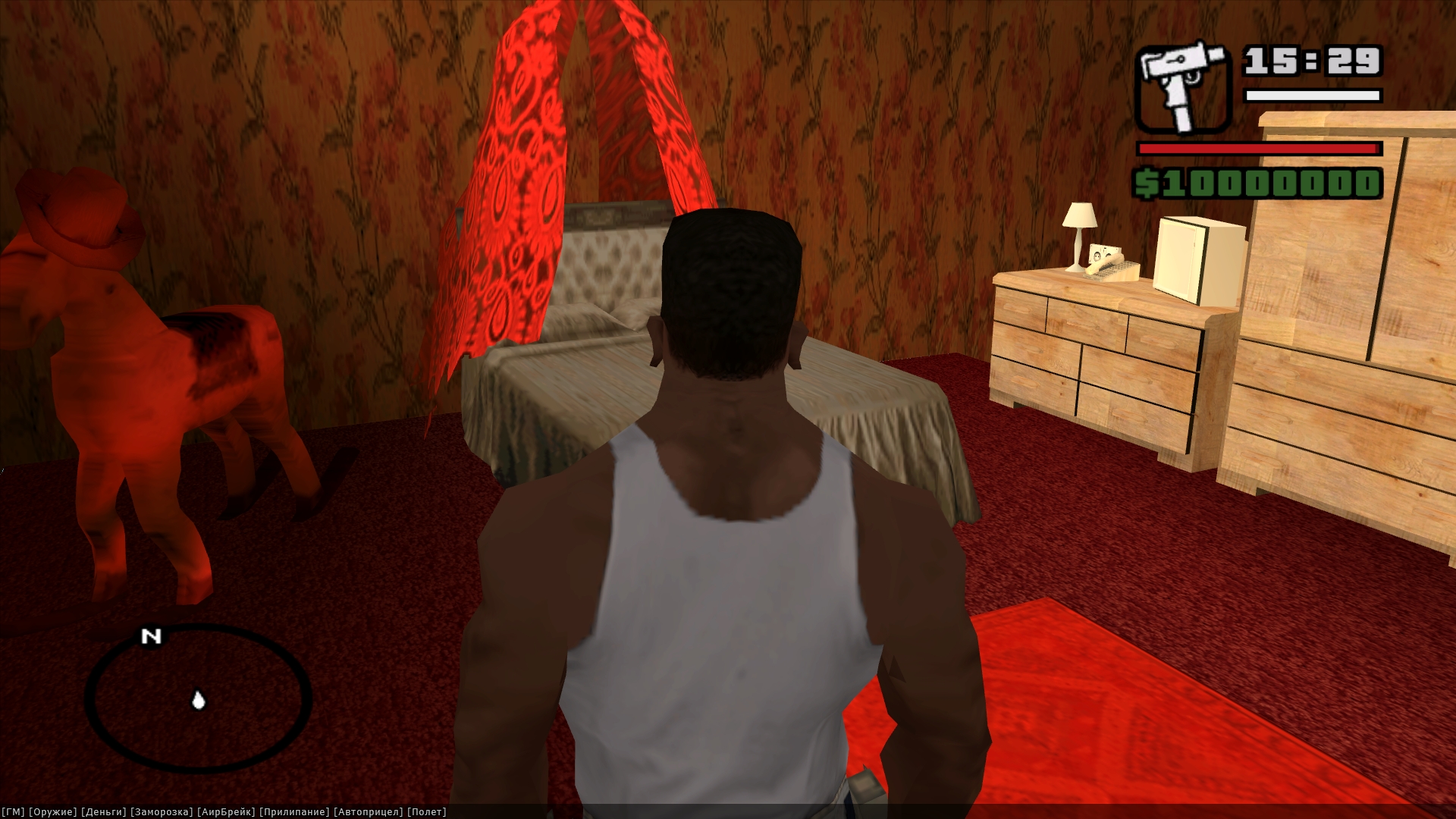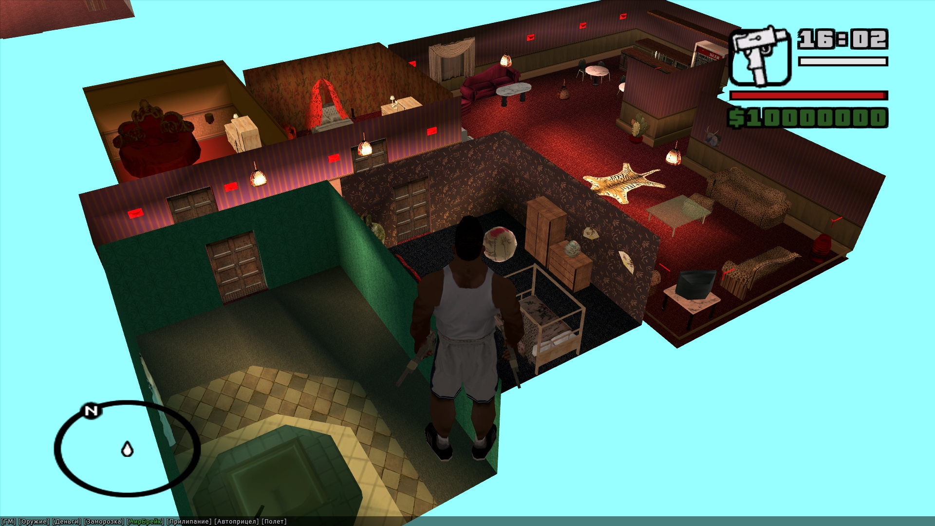 В первых версиях GTA SA можно было, в прямом смысле, заниматься сексом со своими виртуальными девушками (других у тебя и нет, азазазаза). Иным словом – перед нами появлялась целая мини-игра, где мы (шоколадный заяц) бурлим отверстия в брёвнах (ну а как ещё можно назвать этот армагеддон полигонов?). Брёвна без полировки показывать не стоит, а вот комнаты, в которых происходили прочищения труб...