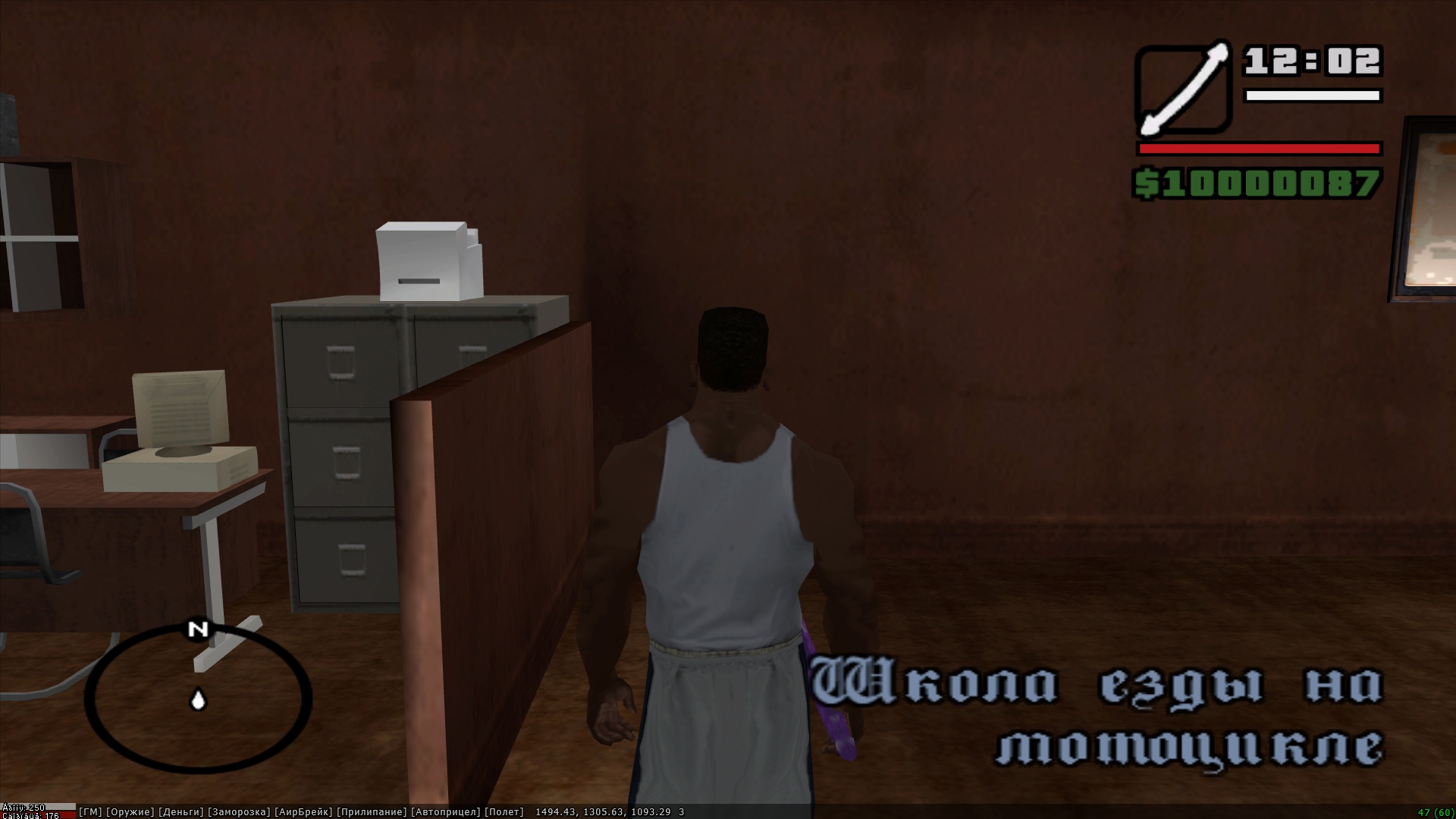 Мотошкола, она существует и в финальной игре, но не как отдельный интерьер. К сожалению, поучится ездить на мотоцикле, конкретно в этой школе – нельзя. Особо похвастаться нечем, интерьер похож на интерьер автошколы.