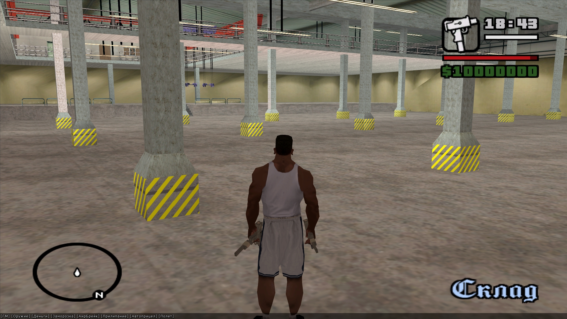 Во всей игре имелось несколько складов, на двух из них проходят потные сражения, но они идут как часть карты, а ещё два есть в игре, но как интерьеры. Первый склад имеет точку респауна. Сырой как есть, но практически всё осязаемое. На некоторые лестницы нельзя подняться. Похоже, что задумывался как точка бизнеса, аля GTA Online. Напомню, что в GTA San Andreas есть кооперативная игра на двоих, в PlayStation 2 версии (миссии ярости, игра за подругу или же найти подходящий подбираемый предмет), а первый мультиплеер в 3D вселенной должен был появится ещё в GTA III, но в качестве обычного матча игрока против других игроков.