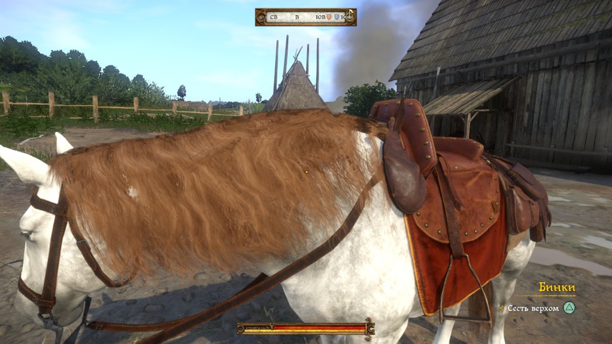 «Лошадиные» пасхалки Kingdom Come Deliverance не заканчиваются на Плотве. В тех же Мрхоедах, совсем рядом со скакуном Геральта пасется Бинки, лошадь Смерти из цикла Терри Пратчетта о Плоском мире. Бесстрашное надо сказать создание.