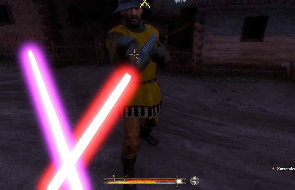 Фирменная система фехтования, разработанная студией Warhorse, показалась моддеру Keyser Soze идеально подходящей для сражений на световых мечах. Недолго думая он заменил модели коротких мечей, полутораручных мечей и сабель на световые клинки из вселенной Звездных Войн.