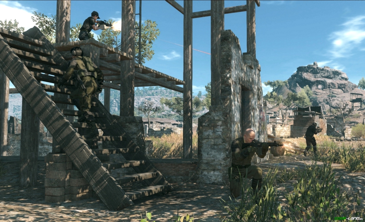 Что же касается карт, то все они разнообразны. Всего их пять или восемь, если ты конечно прикупишь DLC. Каждая из карт отличается своим наполнением и цветом. Сейчас ты сражаешься в лесу лежа в траве и грязи снайпером и тебя невозможно обнаружить, а в следующей игре ты бегаешь зеленый на фоне оранжевого фона Mother Base отхватывая знатное количество пуль. Все карты весьма обширны, хорошо сбалансированы и имеют много разных проходов или лазеек, что дает простор для тактической игры.