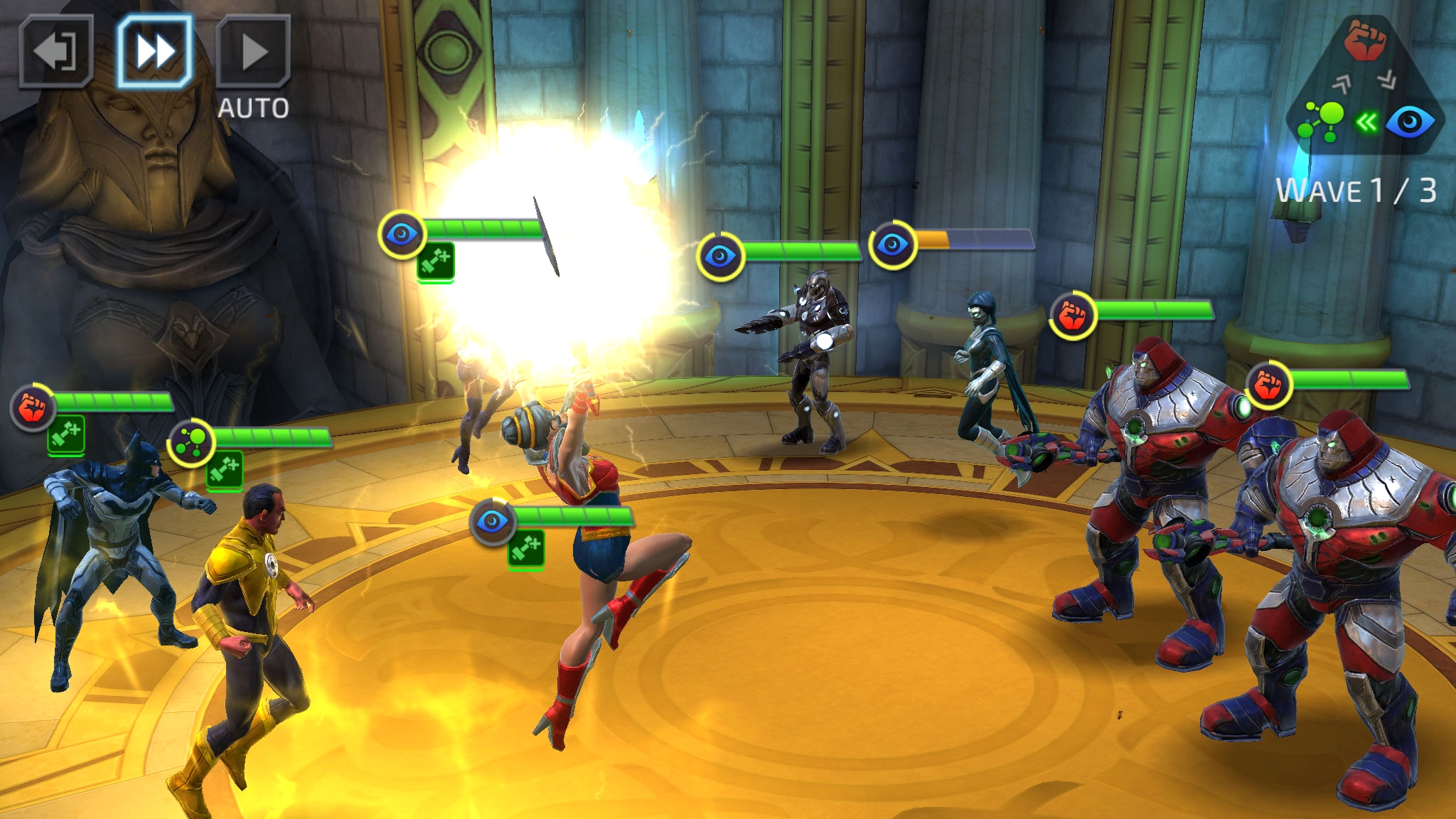 Любимейшие герои и злодеи, а также малоизвестные персонажи, о которых вы ничего не знаете, слышать не слышали, да и вообще не знаете, о их существовании. С каждой пройденной главой, вы получаете в награду опыт, немного баблишка и разные материалы. Так вот, эти материалы вы можете использовать, чтобы усилить персонажа, причём есть несколько путей. Первое, апгрейд его амуниции. Второе, накачать его экспой. Третье, прокачивать абилки. Конечно со временем надоест играть за одних и тех же персонажей, захочется опробовать новых и создать новую команду. Кстати, команда состоит из четырёх персонажей, при этом имеется шесть свободных слотов, то есть вы сможете создать шесть команд. Если вдруг надоедает сюжетный режим, всегда можно пройтись по особым событиям, которые вы можете обновить в любой момент. Можно посетить легендарные события, в которых вам даются особые награды. Так же разработчики предоставили нам Испытание Героев, по завершению которых, получите осколки от нового персонажа и собрав определённое количество, призываете его себе в команду. А если и так не нравится, то тут вам открываются врата в Арену. Не понимаю, по каким критериям идёт подбор противников, но первые десять или пятнадцать, обычно слабее вас и шанса на победу у них нет. Ясен пень, будем бить тех, кто слабее и получать особую валюту, а также ранее упомянутые осколки персонажей, причём не разных, а одного. Как я понял, это осколки тех персонажей, которые мы не сможем приобрести в магазине. О, точно, несколько слов о магазине. За игровую валюту, можно попытаться открыть сундук с редким персонажем, не обязательно тратить реальные деньги, чтобы купить всё и сразу. В этой игре имеется баланс, поэтому можно вполне себе обойтись и без доната, стать главным надирателем попок на арене. Что же касается графики и всего прочего. Меня порадовали эффекты, которые сопровождают специальные атаки персонажей. Например, у вас в команде Флеш или Обратный Флеш, ваш черёд бить по черепушке, жмякаете на скилл и выбираете жертву, дальше Флеш с присущей ему сверхскоростью мчится раскалывать черепа, он вовсе не бредёт по полю, как полумёртвая туша. К тому же, если персонаж по комиксам левитировал, то и в игре он будет левитировать над полем битвы, а не стоять на земле. В целом картинка радует глаз. Конечно, если вы графод*очер, то увы и ах, путь вам в иные игры, на иных платформах.