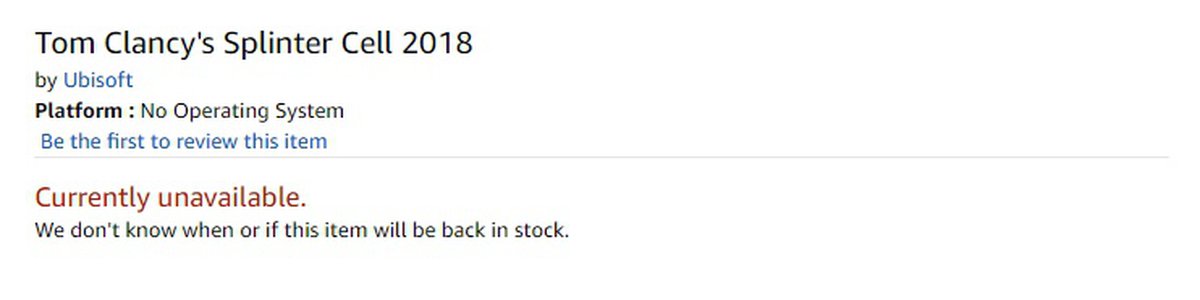 В сабреддите Xbox опубликовано более интересное изображение, снятое на странице Tom Clancy's Splinter Cell 2018 в канадском Amazon: здесь показан идентификатор проекта, E3TomClancy'sSplinterCell2018_PC, намекающий на анонс игры во время будущей выставки E3. Подтвердить достоверность этого изображения нам не удалось.