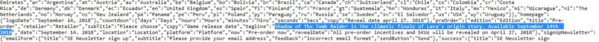В исходном коде нового промо-сайта можно обнаружить намек на дату выхода игры: проект действительно будет называться Shadow of the Tomb Raider и выйдет 14 сентября 2018 года. Игра станет кульминацией приключений Лары Крофт. Полноценный анонс состоится 27 апреля, в этот же день откроется прием предзаказов на PC, PlayStation 4 и Xbox One.