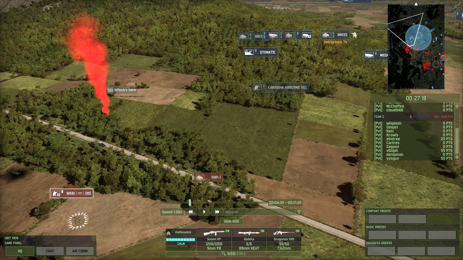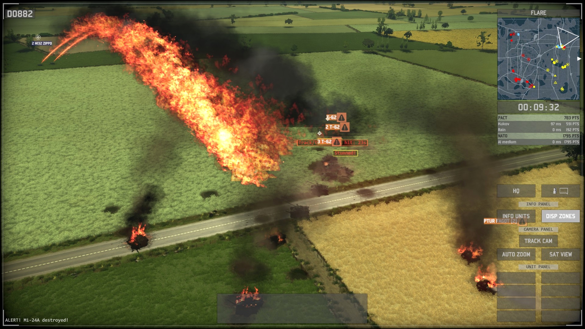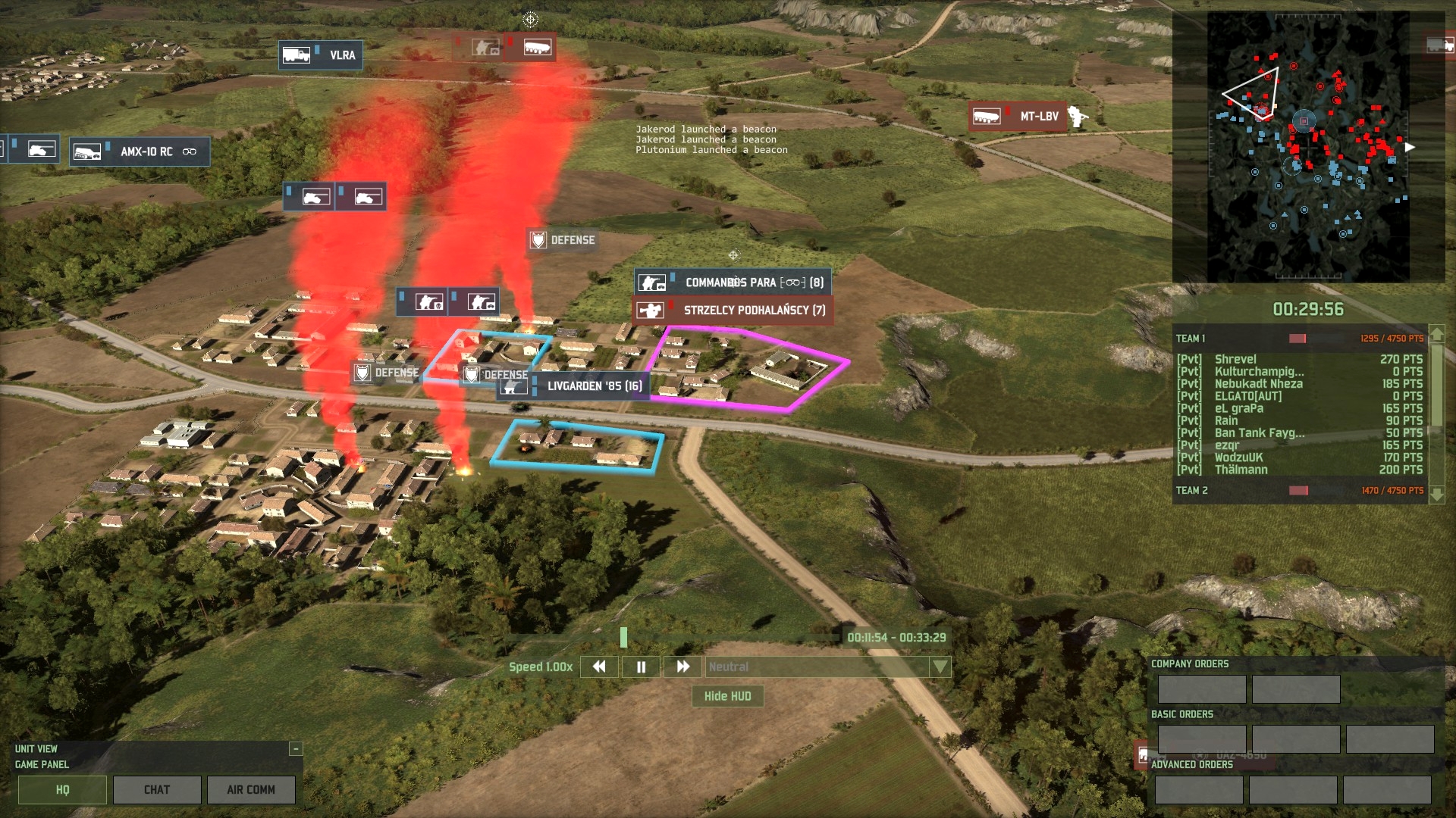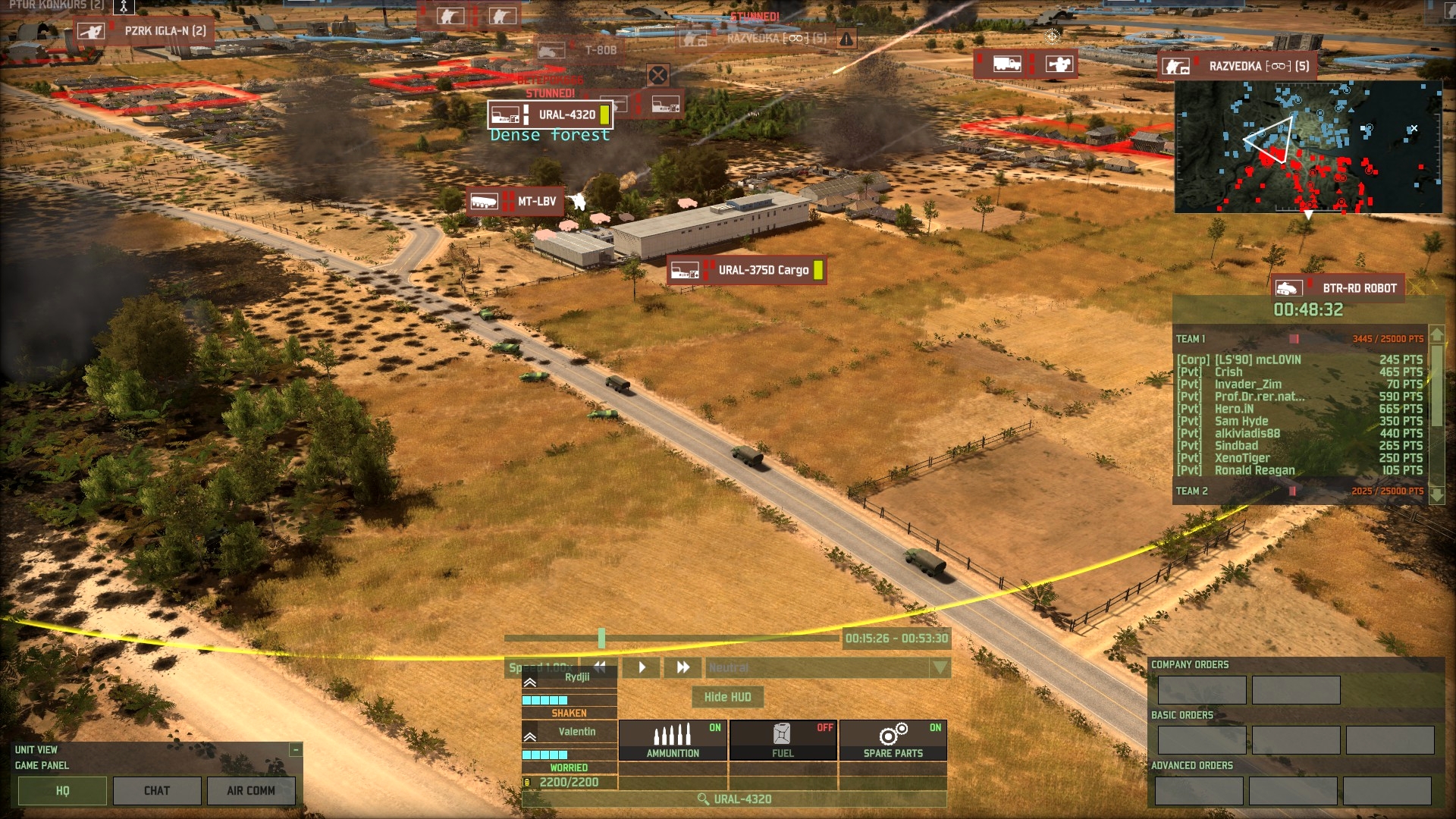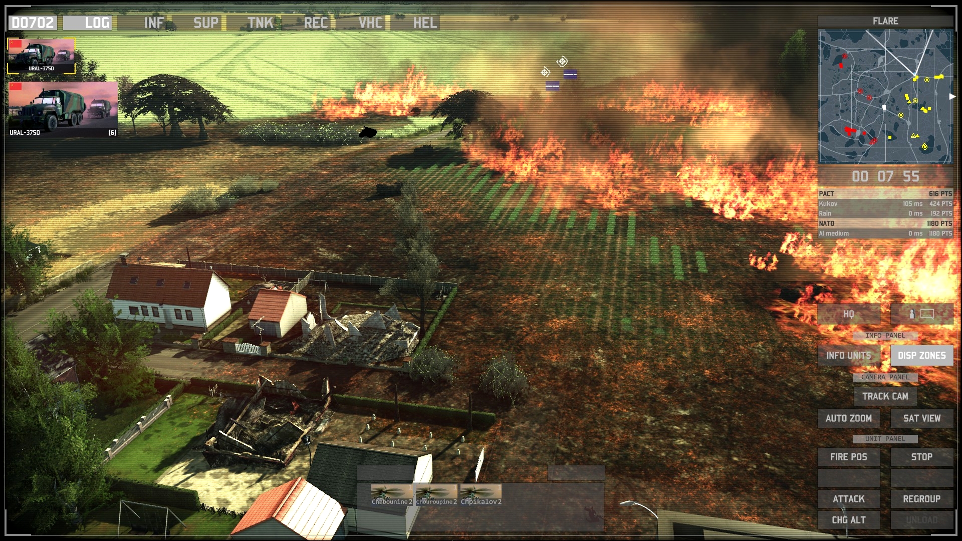 Так вот, карта сражения в Wargame поделена на определённые сектора. Сектора эти удерживаются при помощи специальных командных юнитов. В отличии от, например, Company of Heroes, в нашем случае территория находится под контролем ровно до тех пор пока командный юнит находится на ней. Т.е. если вы увезёте командный автомобиль на другую точку, то потеряете контроль над территорией. Естественно, командные юниты стоят недёшево, и противник всегда пытается уничтожить именно их в первую очередь. Ну а вообще, игру вполне можно разделить на несколько частей. Я не стану никого заставлять читать ещё огромное количество текста, поэтому несколько следующих глав спрятаны под спойлерами: