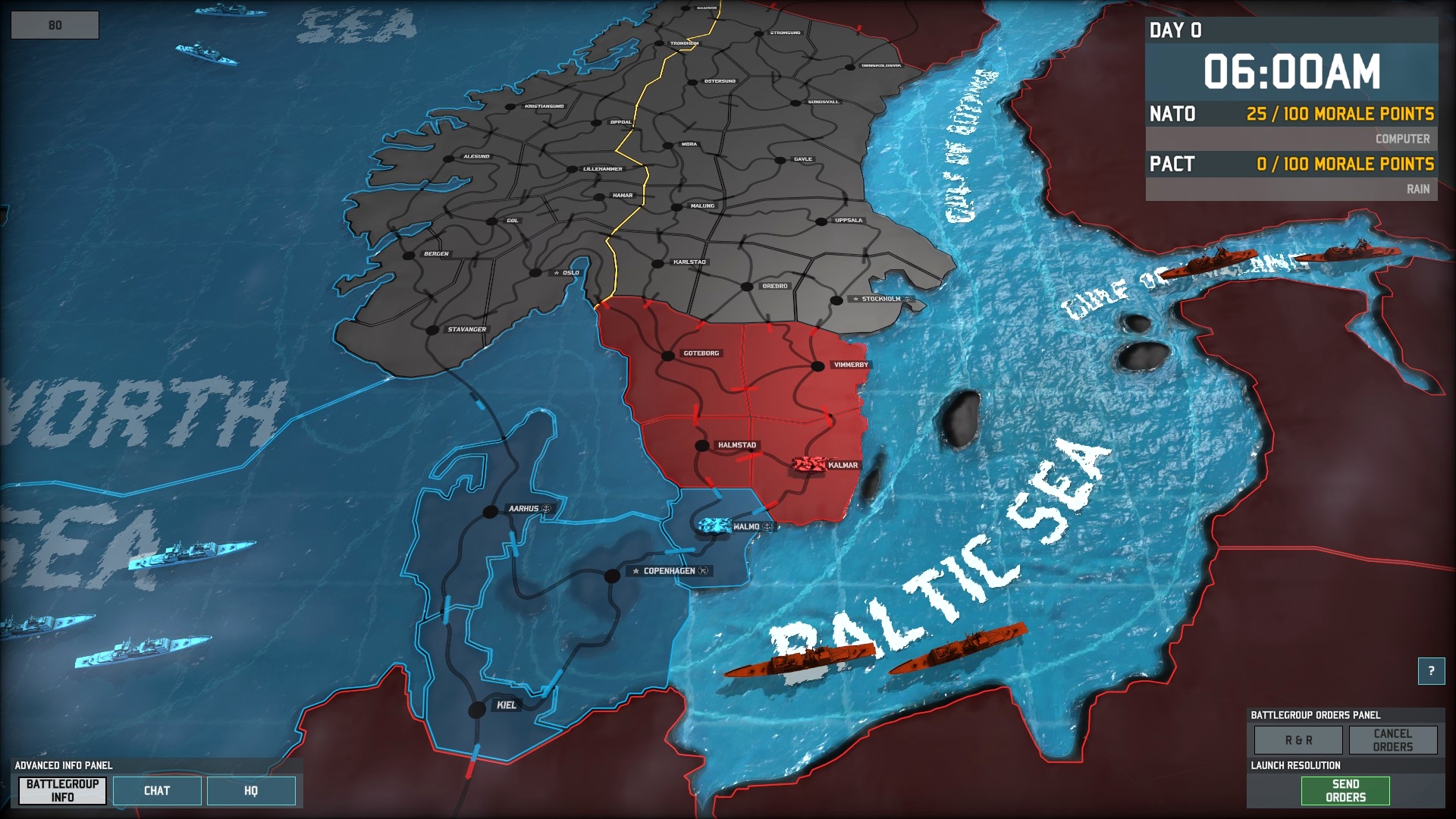 У вас есть определённое количество политических очков (читай, местная валюта) за которую вы можете ремонтировать войска, докупать новые армии, а так же использовать пассивные бонусы: так, например, при особом желании можно скинуть атомную бомбу на голову противнику , или использовать поддержку флота. Ход кампании зависит не только от вашего плана, но и от второстепенных факторов: свои коррективы может внести погода, а очередной параллельный конфликт где-нибудь в Азии может заставить союзных адмиралов увести свои корабли в иную часть света, оставляя вас на некоторое время без поддержки.