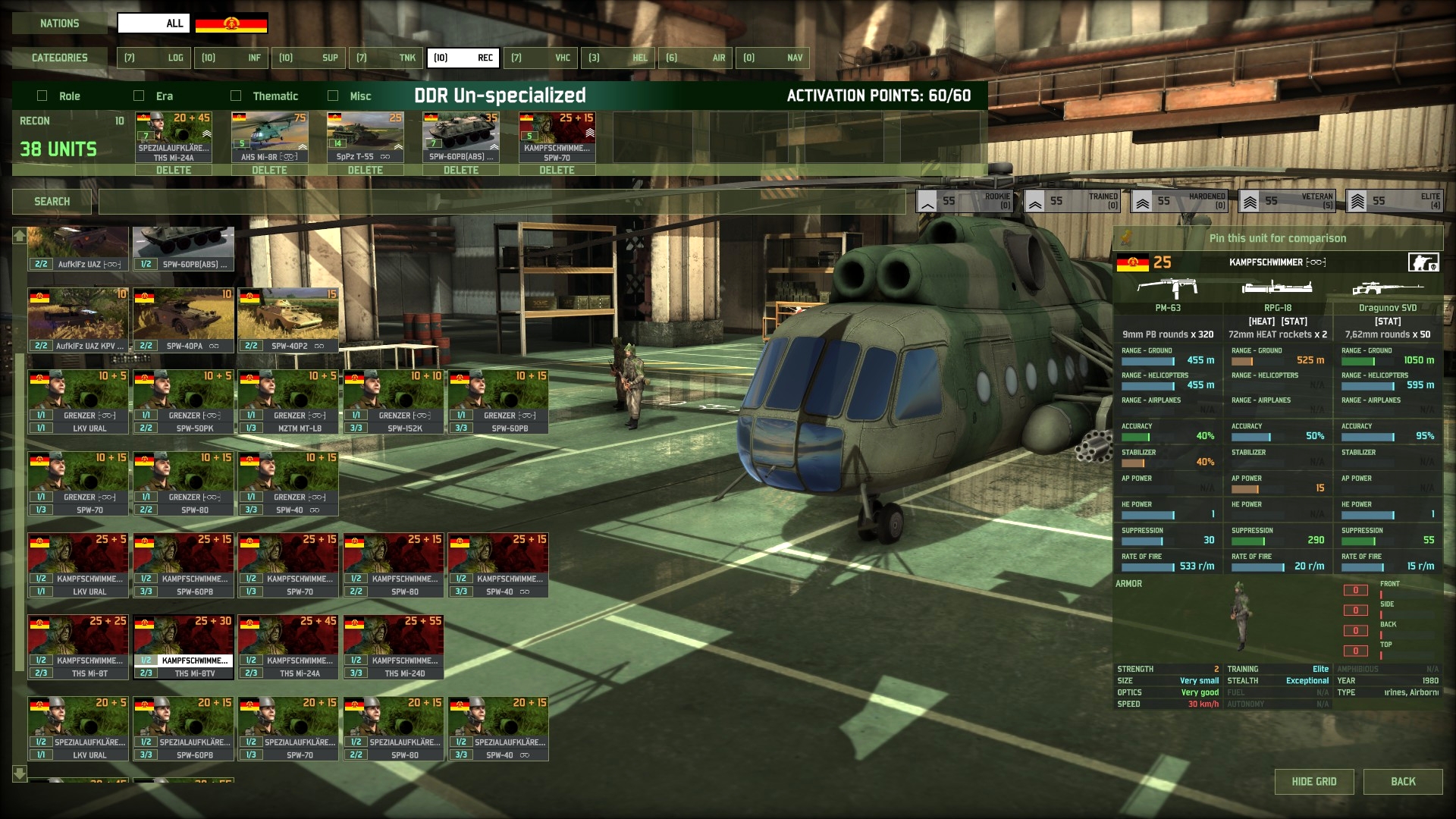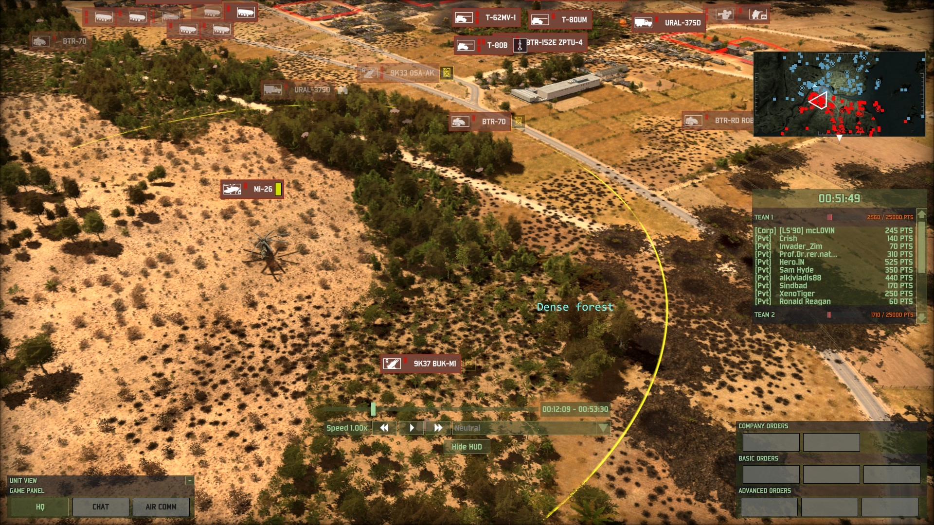 - Воздушная техника (ограничена только вертолётами, однако есть как чисто наблюдательные единицы, так и техника, вооружённая, что называется, "до зубов")