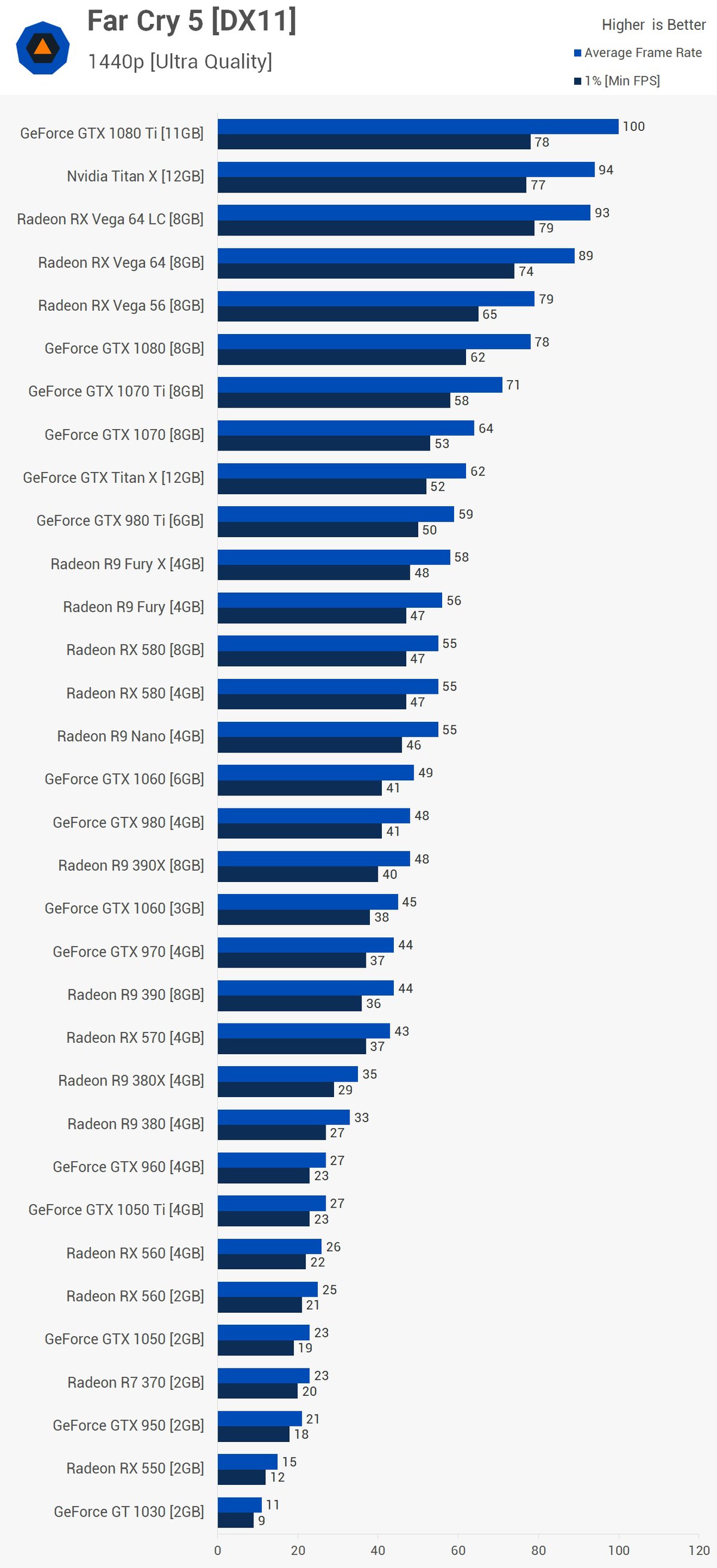Если забыть о понижении настроек, то для комфортной игры в разрешении 1440p понадобится карта уровня Radeon RX 570 или GeForce GTX 970: обе видеокарты выдают почти 40 кадров в секунду на максимальных настройках.