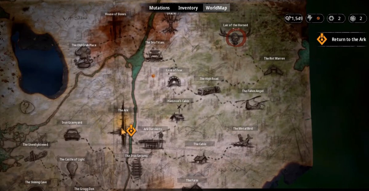 Помимо перестрелок и обзора доступных мутаций разработчики мельком показали карту мира Mutant Year Zero Road to Eden. В первом геймплее герои гуляли по самому краю Зоны: мы насчитали на карте около двух десятков точек интереса и это явно не все.