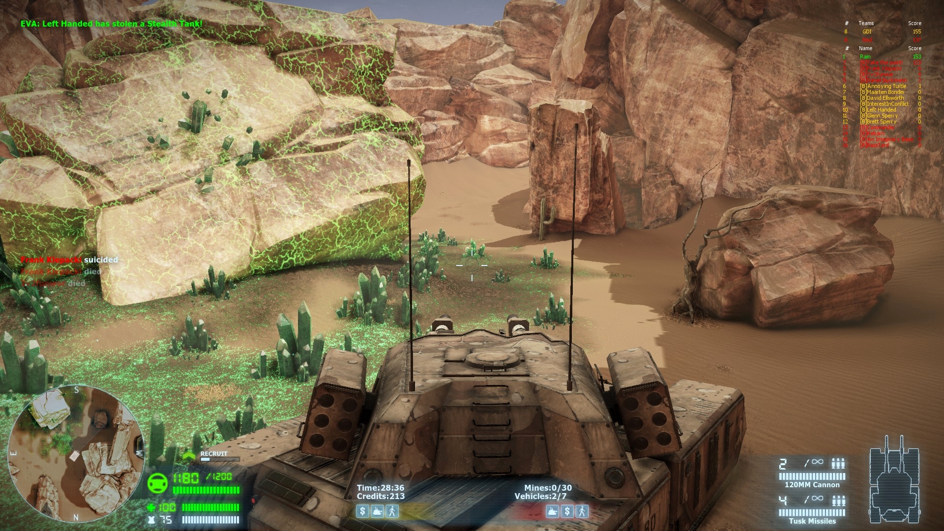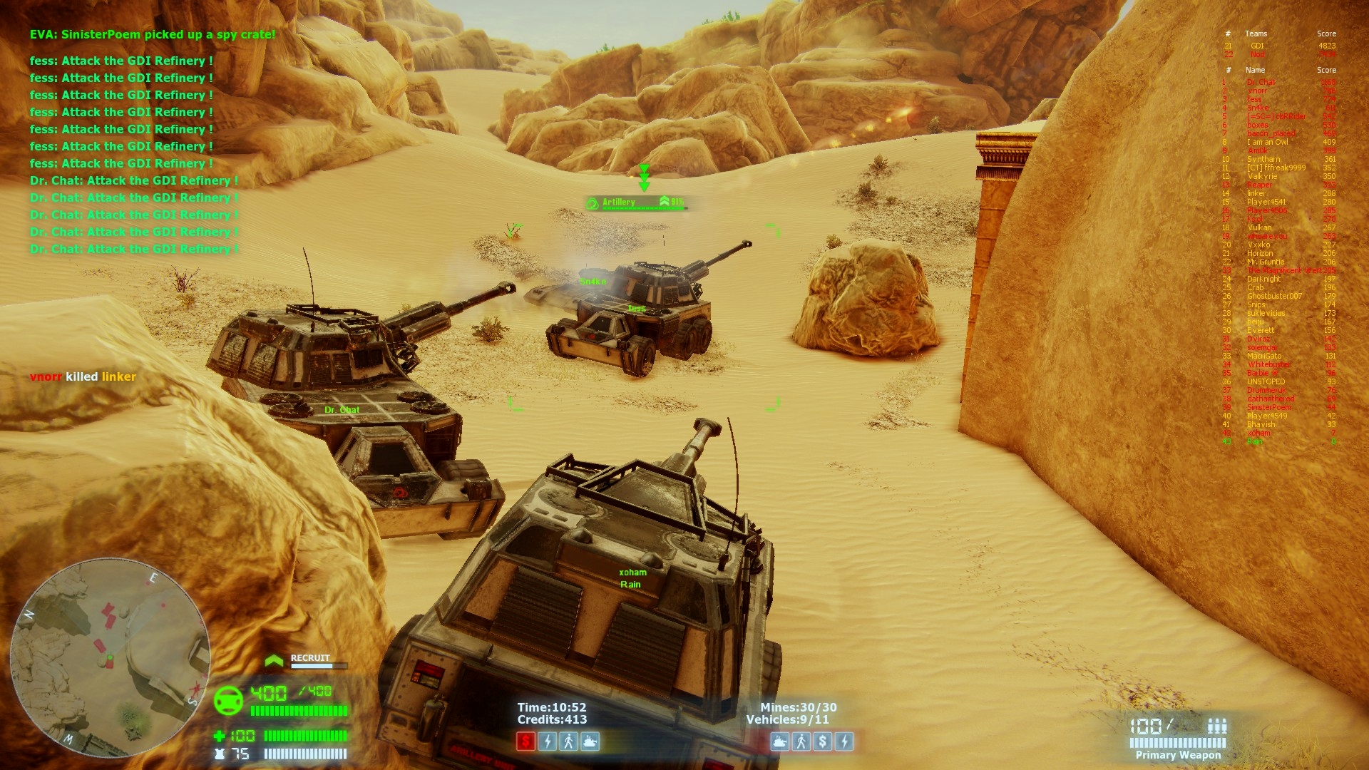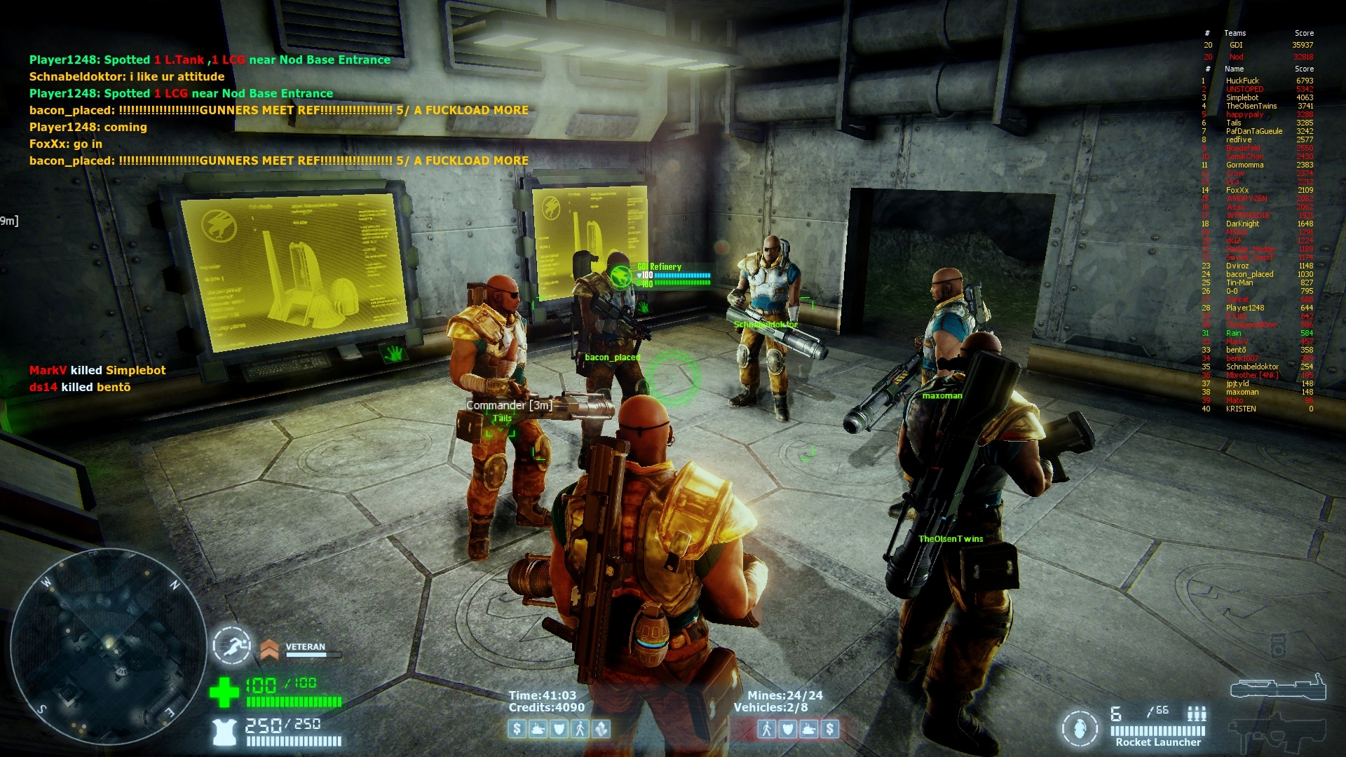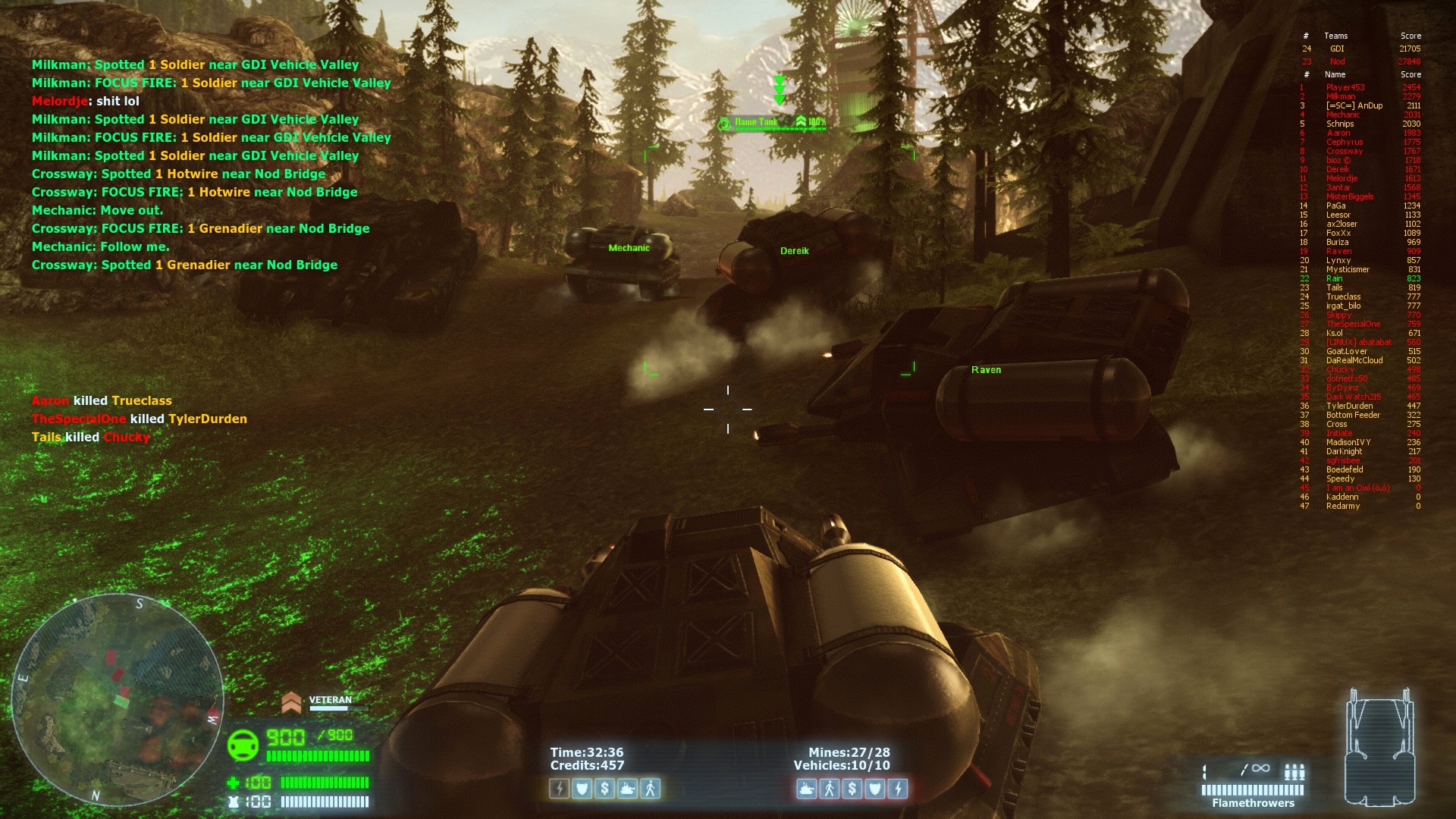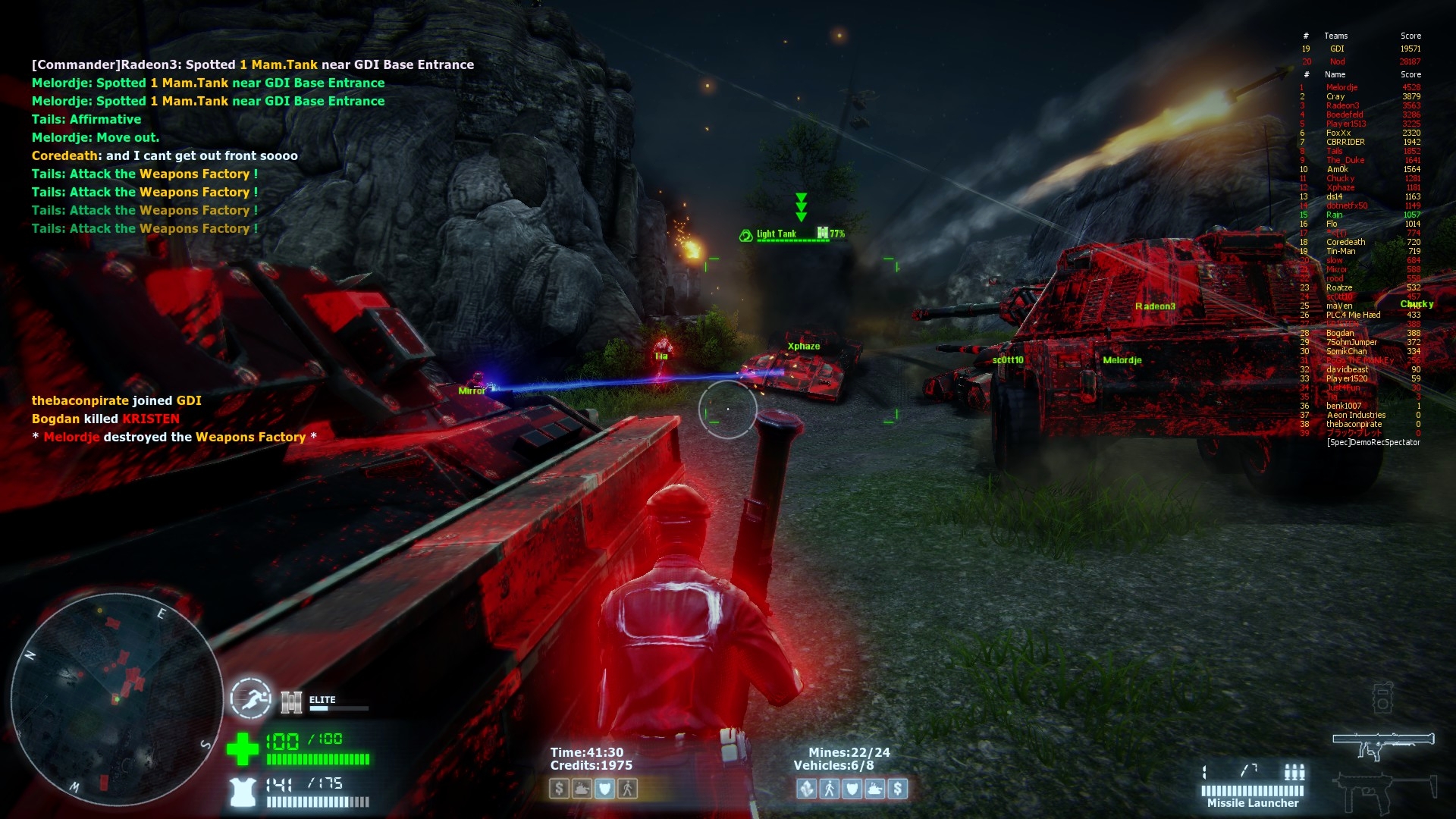 Ну и последним действительно коренным изменением (кроме полной перекалибровки и балансировки всего вооружения, но это уже отдельная статья), стало введение командиров. В отличие от, например Alien Swarm, где командующий играл в классическую RTS, раздавая приказы и строя здания, командир в Renegade X большую часть времени проводит на передовой и не имеет реальной власти. Под его контролем лишь массовые бонусы (например усилить свою команду, бросить дымовую завесу, или даже запустить крылатую ракету по определённой территории). Нет, конечно, командовать и раздавать приказы остальной команде ему в разы удобнее. Ради командиров даже специальный чат сделали, который большими розовыми буквами по всему экрану пишет приказы, однако ничего вам не мешает послать своего командующего куда подальше и продолжить играть в соло.