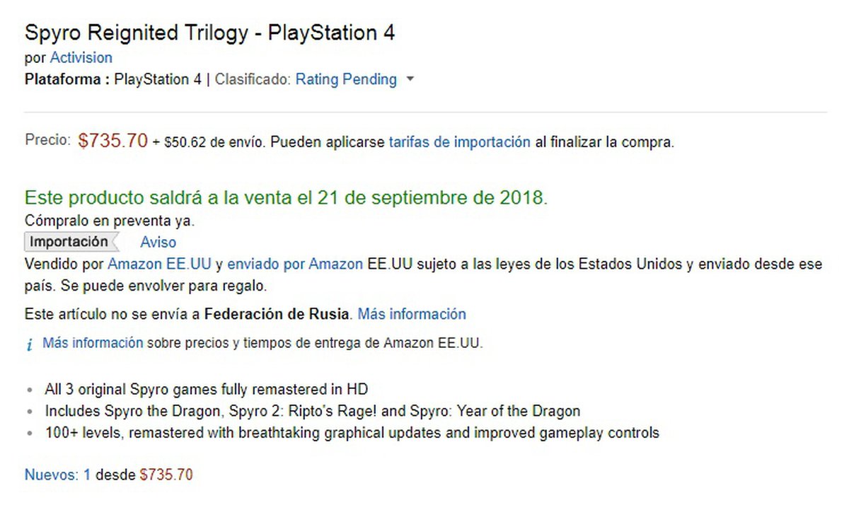 Релиз Spyro Reignited Trilogy, если верить мексиканскому Amazon, состоится 21 сентября 2018 года. Помимо описания игры в магазине засветилась и симпатичная обложка ремастера.