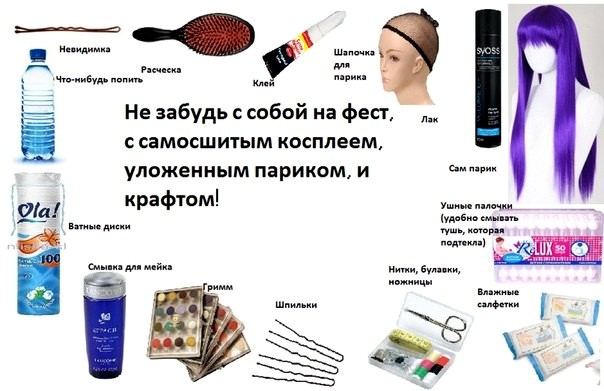 Хотелось бы узнать, что творится за кулисами шоу. Какой мастхев предметов ты берёшь с собой на различные коны и конкурсы?