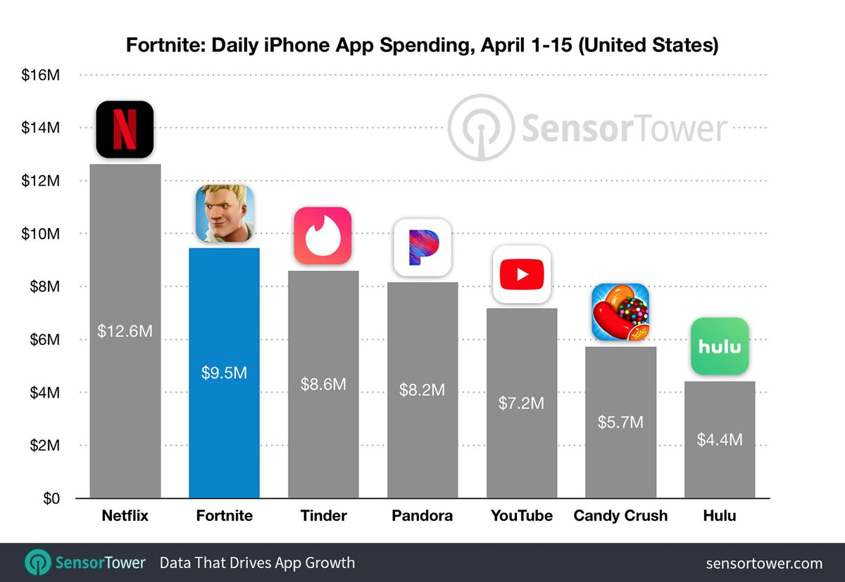 Начиная с этого дня, уверены в Sensor Tower, игра зарабатывала больше $1 миллиона ежедневно. За период с 1 по 15 марта только игроки из США потратили на мобильную версию Fortnite около $9.5 миллионов.