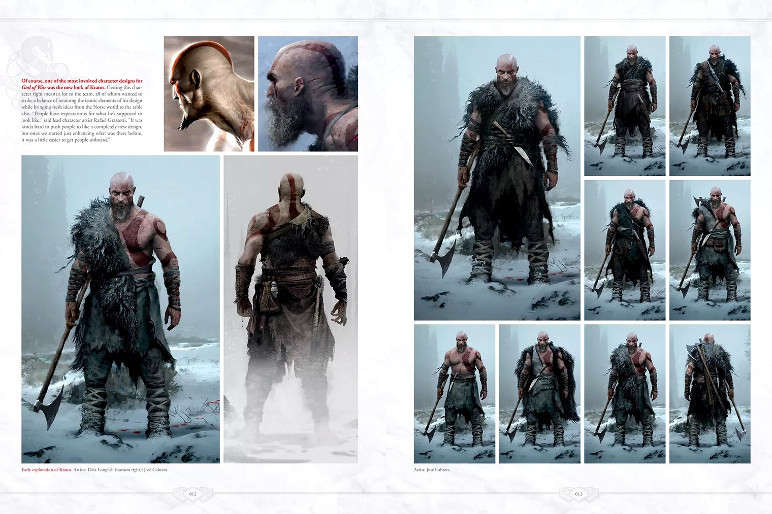 Редакции Polygon позволили опубликовать обложку и несколько страниц The Art of God of War. На первой же странице фанатов встречает обновленный образ Кратоса — нечто среднее между тем Богом Войны, что появился в игре, и «старым» Кратосом из первых частей серии.