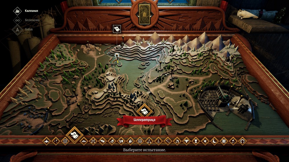 Бесконечный режим является цельным и последовательным приключением хоть и состоит из поэтапных квестов. Каждый квест это отдельное задание и в сравнении с основной сюжетной линией они более просты, так как обычно требуют победить конкретного противника. Кроме основного задания можно активировать до трех дополнительных условий, которые дают свои награды, но и провал которых, повлечет последствия. Таким образом, снова приходиться балансировать между ресурсами, делать сложные выборы, продумывать свою дорогу, докладывая в колоду карты между квестами и сражаться с постепенно нарастающими силами недругов.