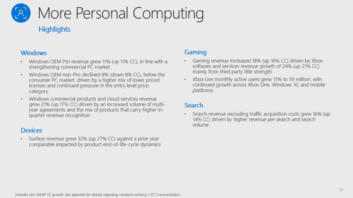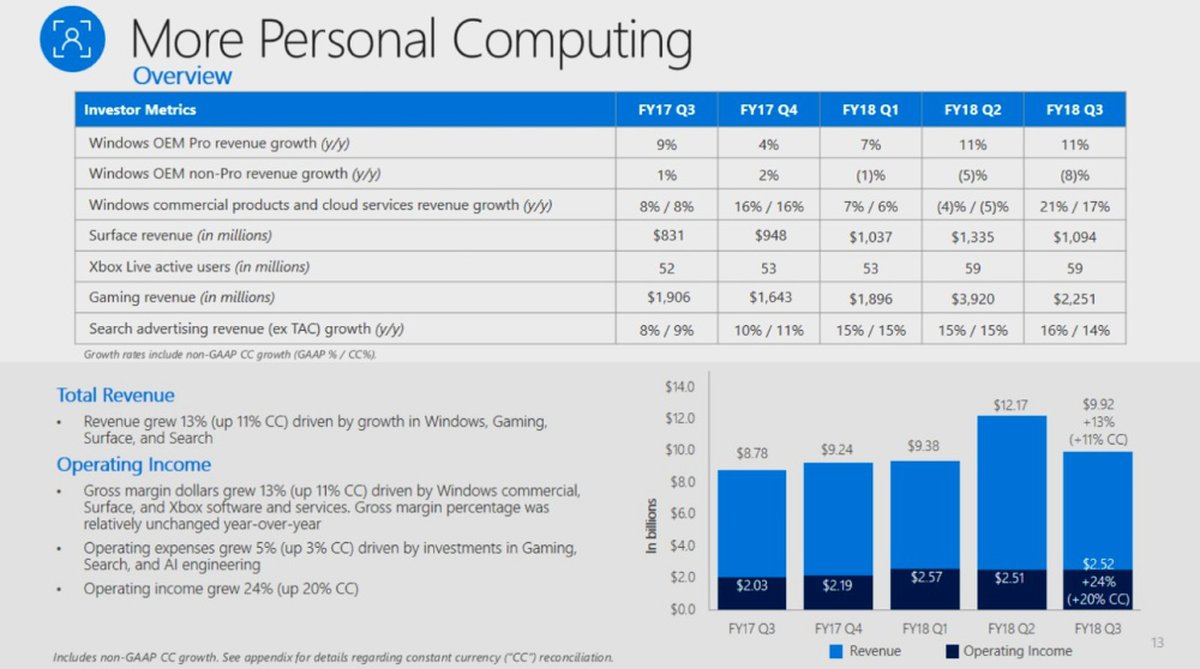В третьем квартале Microsoft удалось сгенерировать $8.3 миллиарда операционной прибыли (на 23% больше прошлогоднего показателя), чистая прибыль корпорации составила $7.4 миллиарда (рост на 35%).