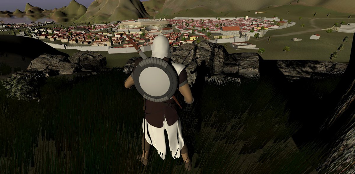 Интригующе размытый скриншот с Афинами был позаимствован из портфолио дизайнера Ноя Стэвиша: он попытался смоделировать Афины, используя бесплатные наборы моделей — в том числе и модель персонажа, созданную по мотивам серии Assassin's Creed.