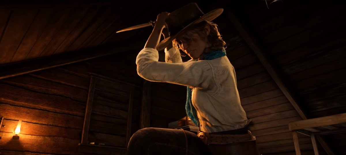 Еще один важный момент: проработка моделей персонажей. Здесь Red Dead Redemption 2 делает большой шаг вперед: герои третьего трейлера выглядят чрезвычайно реалистично. Этот эффект обеспечивается высоким качеством самих моделей, физически корректными материалами кожи и одежды, а также доработанной системой освещения.