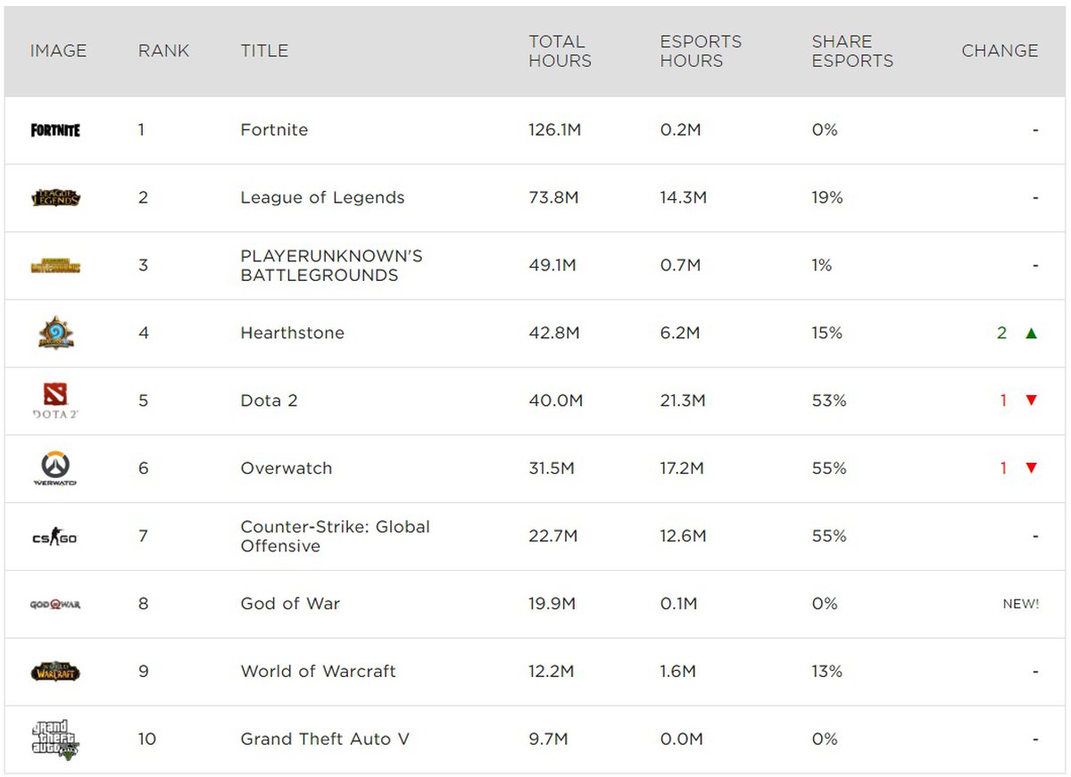 В апреле пользователи Twitch провели за просмотром приключений Кратоса и Атрея почти 20 миллионов часов. Новый God of War вышел 20 апреля, на протяжении следующих 11 дней месяца аудитория Twitch тратила на игру около 1.8 миллионов часов ежедневно.