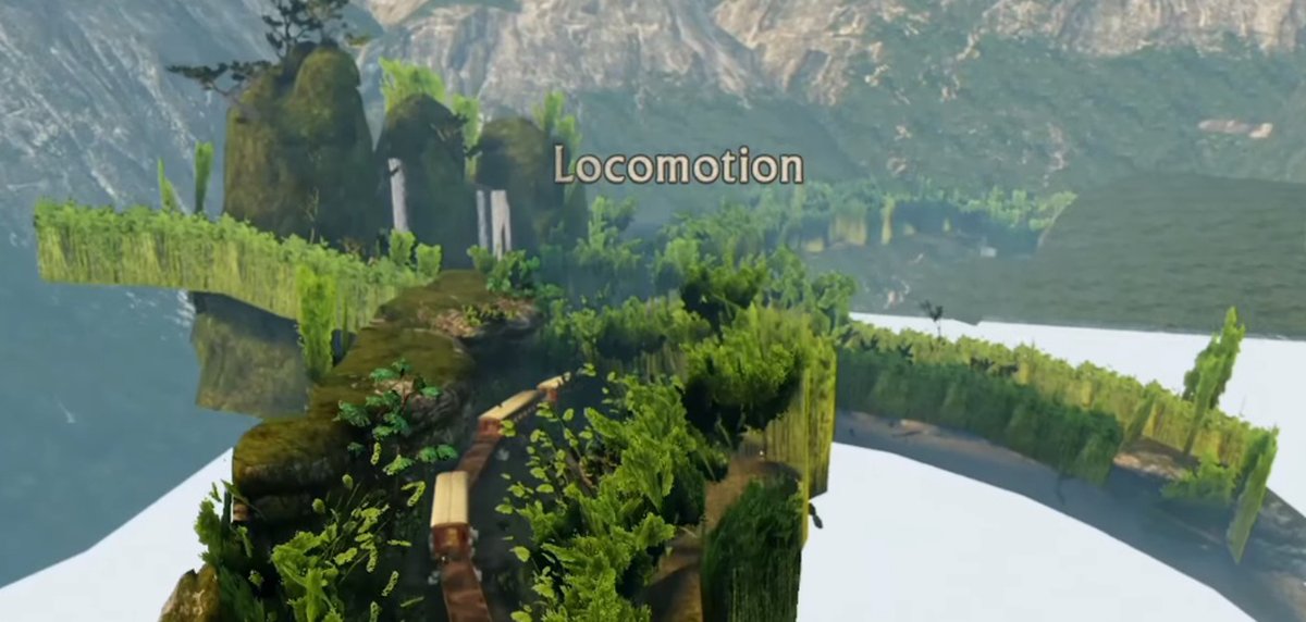 Уровень с поездом, проходящим через джунгли, устроен примерно так же. Никаких джунглей нет: пути проложены через зеленый коридор, слева и справа от которого время от времени встречаются недостижимые горы и холмы, огороженные «забором» из низкополигонального леса.