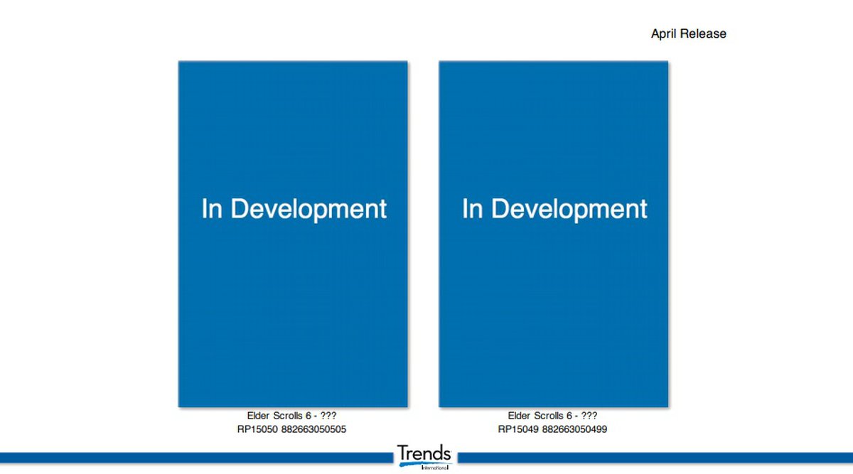 В феврале Motwera не стал публично делиться своим открытием, однако вчера информация о возможной подготовке рекламной кампании следующей The Elder Scrolls все-таки всплыла. Но есть проблема: в файле Les jouets Franckid's сказано, что постеры Elder Scrolls 6 должны выпустить в апреле — сейчас май, об игре ничего не слышно.