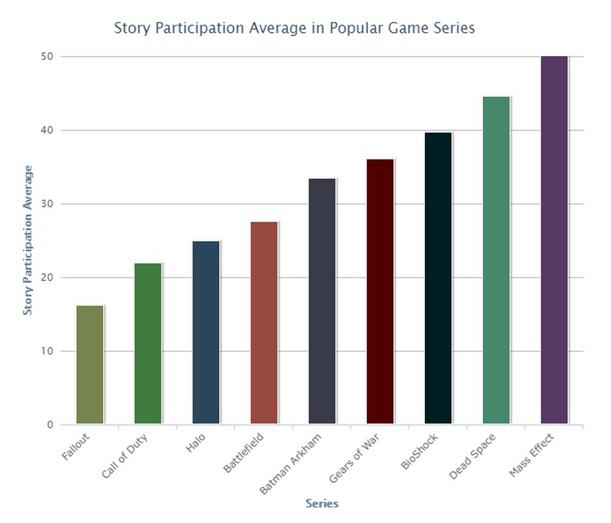 Журналисты проанализировали аналогичные показатели и у других игровых серий. Оказалось, что средний процент открытия сюжетных достижений у Call of Duty один из самых низких: 22%. У Battlefield этот показатель составляет 28%, у BioShock — 40%. Лидером с показателем в 50% разблокированных достижений кампании оказалась серия Mass Effect.