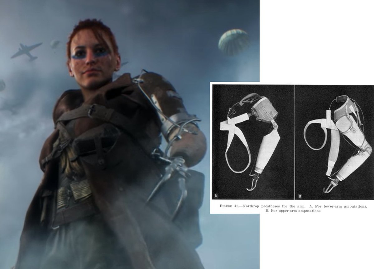 Нам не удалось выяснить год создания протеза, но он широко применялся по меньшей мере до 1946 года. Героиня дебютного трейлера использует максимально простой вариант устройства: обычно металлические части закрывали пластмассой или латексной перчаткой, напоминавшей настоящую кисть.