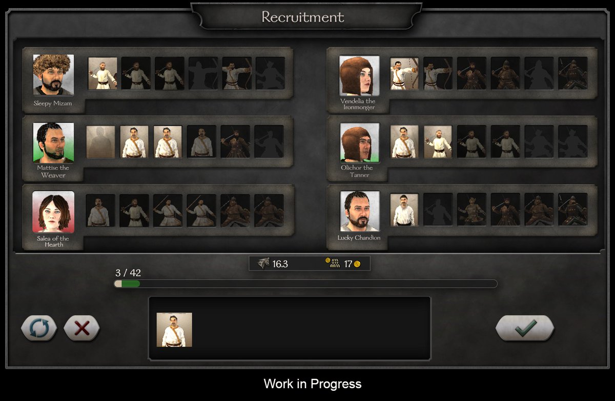В мире Mount & Blade сила игрока не в последнюю очередь определяется размером его армии. В первых частях серии наем армии сводился к переезду от деревни к деревне и поиску новобранцев, в Bannerlord механика слегка изменится.
