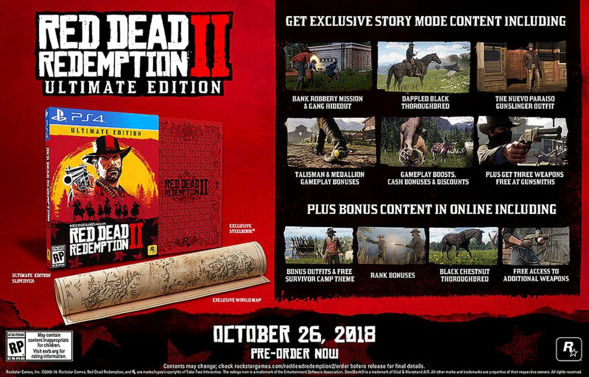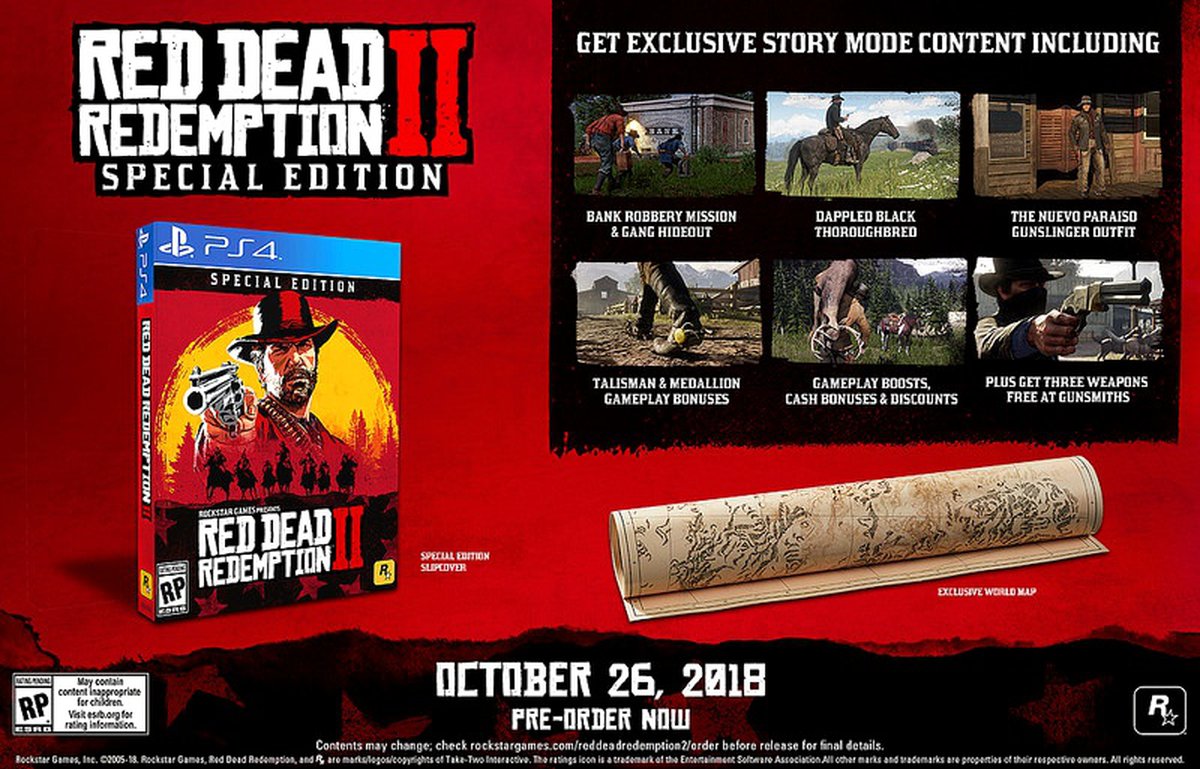 В PlayStation Store и Xbox Store заработал прием предзаказов Red Dead Redemption 2. Игра предлагается в трех изданиях: стандартном, Special Edition и Ultimate Edition.